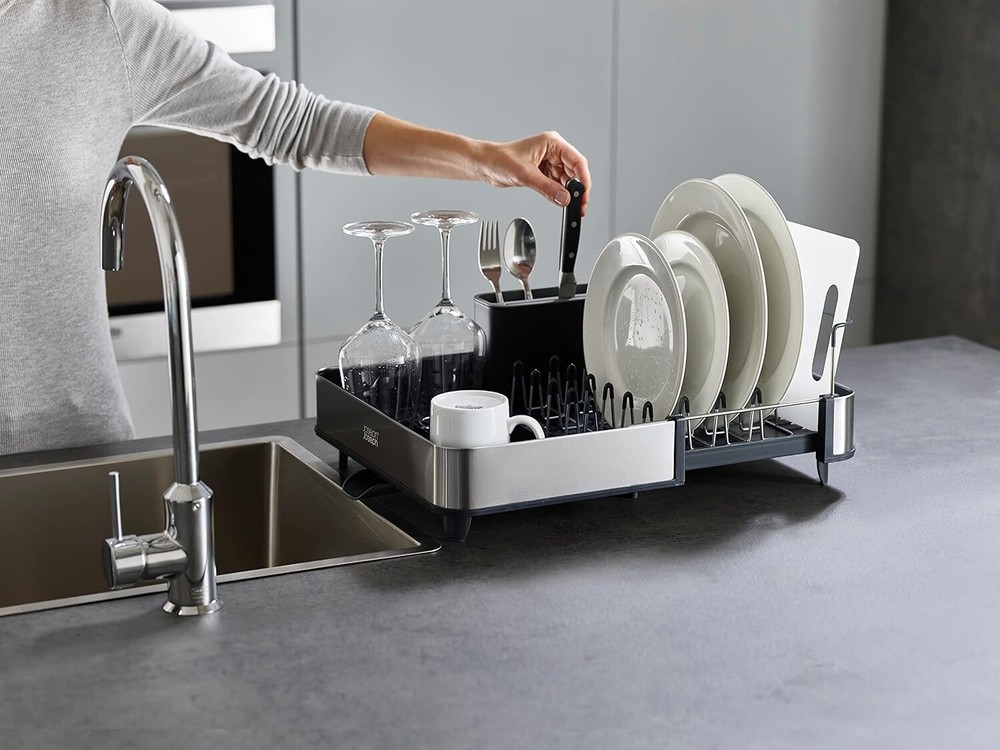 Adjustable Two-Part Dish Rack with Movable Cutlery & Rust-Resistant Steel Design