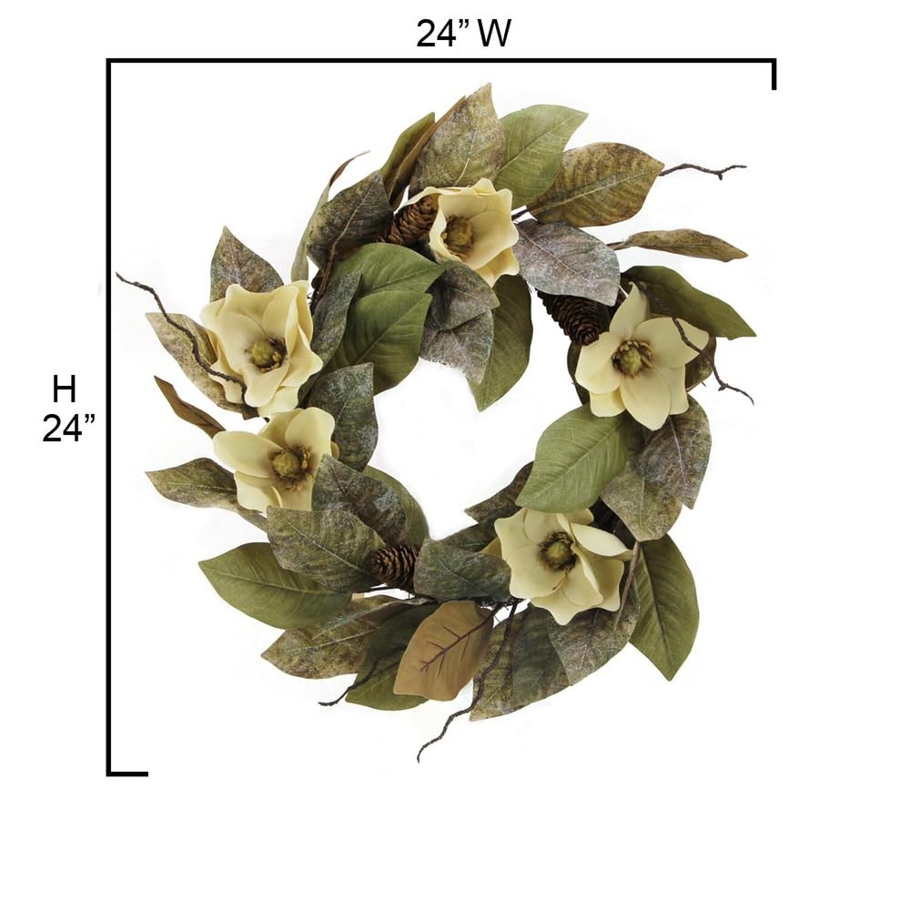 Admired By Nature 24" Magnolia Pine for Home Office Front Door Wreath, Wall Hanging Arrangement Decoration Product Details Color: Magnolia Pine White Brand: Admired By Nature MPN: GFW7061-NATURAL EAN: 8736180032921 UPC: Does not apply Color: Magnolia Pine White Brand: Admired By Nature Material: Polyester, Silk Mounting Type: Door Mount Shape: Round Item Weight: 1.3 Pounds Product Dimensions: 5"D x 20"W x 22"H Seasons: fall, winter, summer Occasion: wedding Manufacturer: Admired By Nature Color: Magnolia Pine White Brand: Admired By Nature Material: Polyester, Silk Mounting Type: Door Mount Shape: Round Item Weight: 1.3 Pounds Product Dimensions: 5"D x 20"W x 22"H Seasons: fall, winter, summer Occasion: wedding Manufacturer: Admired By Nature Global Trade Identification Number: 21 Item Weight: 1.3 pounds Country of Origin: China Item model number: GFW7061-NATURAL Is Discontinued By Manufacturer: No Diameter: 24 Inches Fabric Type: Polyester Assembly required: No Number of pieces: 1 Batteries required: No Included Components: Admired By Nature GFW7061-NATURAL Magnolia Wreath Pine For Home Office Front Door Wreath, Wall Hanging Arrangement Decoration, 24", Natural Import: Imported Polyester Imported [Classy Fall Decor] A handmade fall wreath crafted with magnolia green brown leaves and artificial flowers. It has a natural look and feel, you will not believe its faux. [Material] The corn husk fall door hanging wreaths for front door fall is made of high-quality material. Widely used as halloween witch wreath, thanksgiving wreaths, holiday wreaths for front door and farmhouse wall decor. [Occasion] This fall wall decor for the home wreath is perfect for decorating your fall front door, window fall decor, wall, fireplace, fall cabin decor, or farmhouse front porch decor. Also as a gift for your family and friends [Note] Indoor use. If displayed outdoors the artificial fall wreaths for front door should be under cover to avoid rain, snow and, not suitable for excessive sunlight exposure. No assembly is required. [Size] 1 unit of fall door wreaths for front door. Item fully expanded size: 24"H x 24"W x 5.5"D. Item compressed size: 20"H x 20"W x 6"D. Item comes compressed, primping and fluffing are required to match on the image shown. Beautiful 24-inch classy fall decor wreaths for front door is a combination of artificial magnolia green brown leaves and flowers a handmade fall wreath that looks lifelike appearance! This fall wreath front door is uplifting and is perfect for fall autumn, halloween, Thanksgiving or holiday creating a romantic fall joy and its seasonal style for a home office or farmhouse. It is just a simple way to embrace fall season, and perfect accent piece for fall decor for door, fall decorations porch, window, home, walls, enterway, fireplace mantel decor, autumn-themed parties, farmhouse and office fall door decoration. Also as a gift for your family and friends. Recommended for indoor use, but it is possible to display the autumn wreaths for front door outside with covered outdoor locations. Size 24 inch L x 24 inch H x 5.5 inch D. Item comes compressed, primping and fluffing required to match the image shown. No assembly is required. Actual color/finish may vary slightly from screen display.