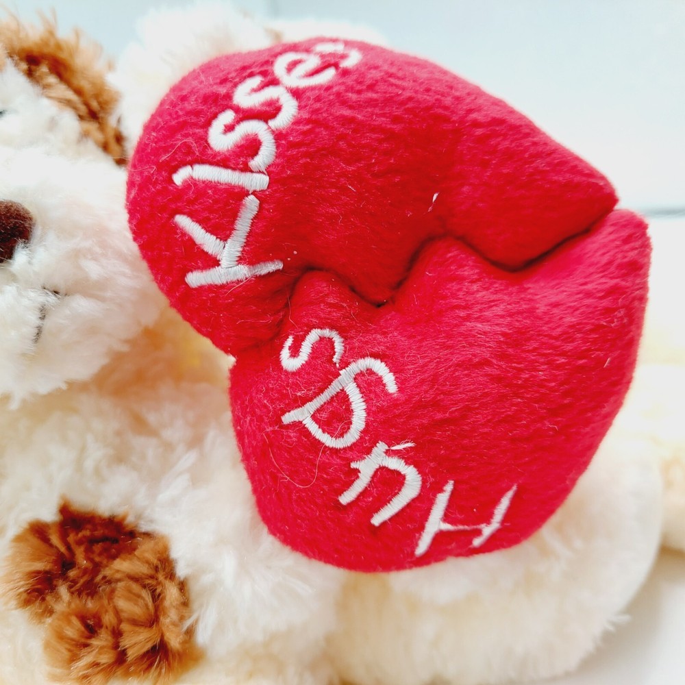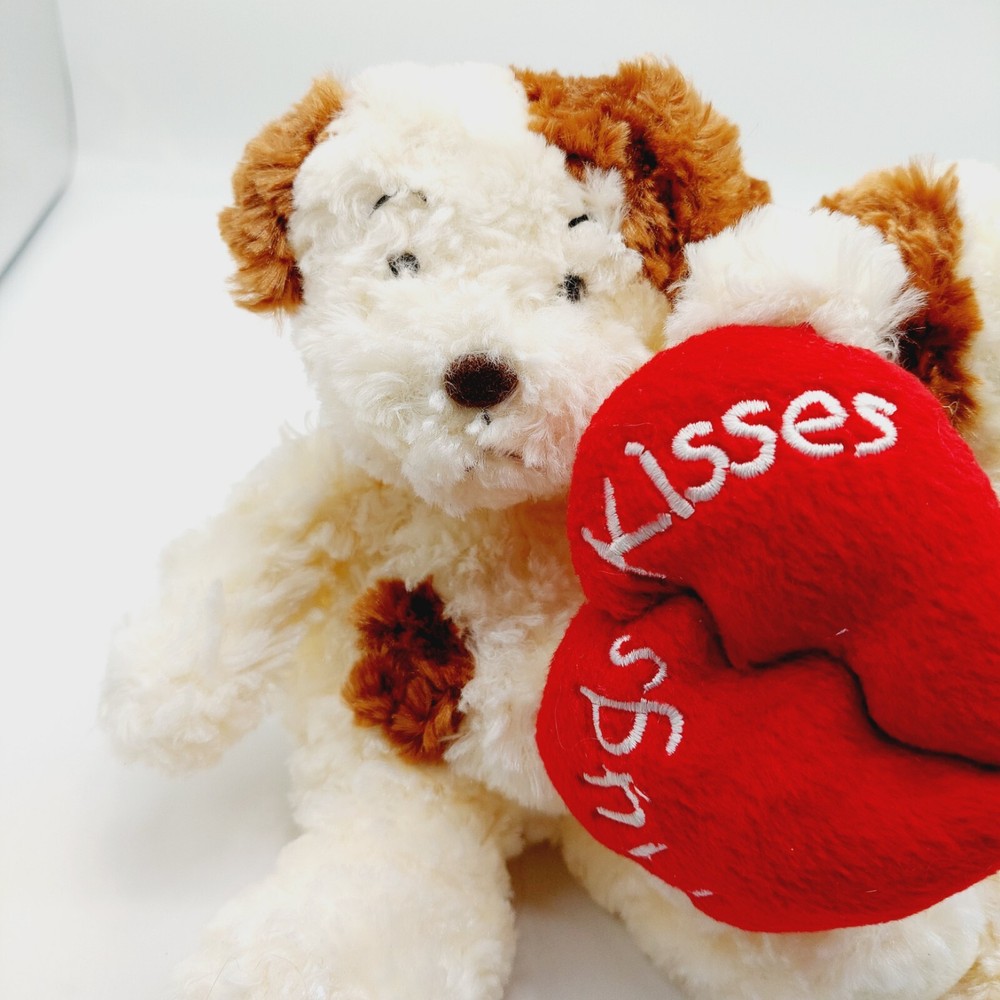 Aurora Dogs Puppies Heart Hugs & Kisses Cream Brown 8" Plush Stuffed Valentines
