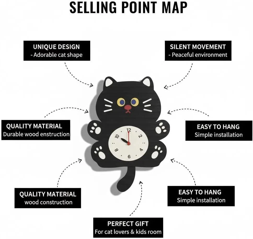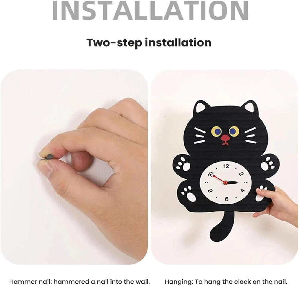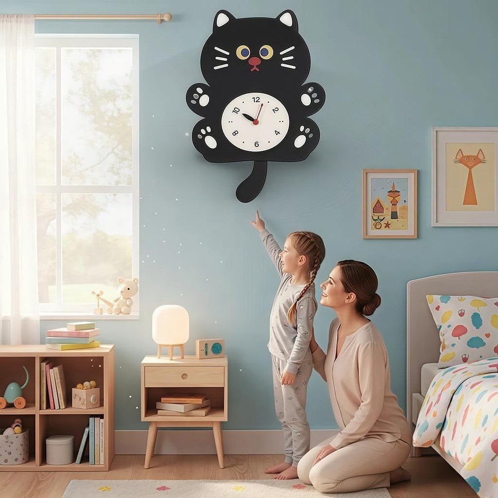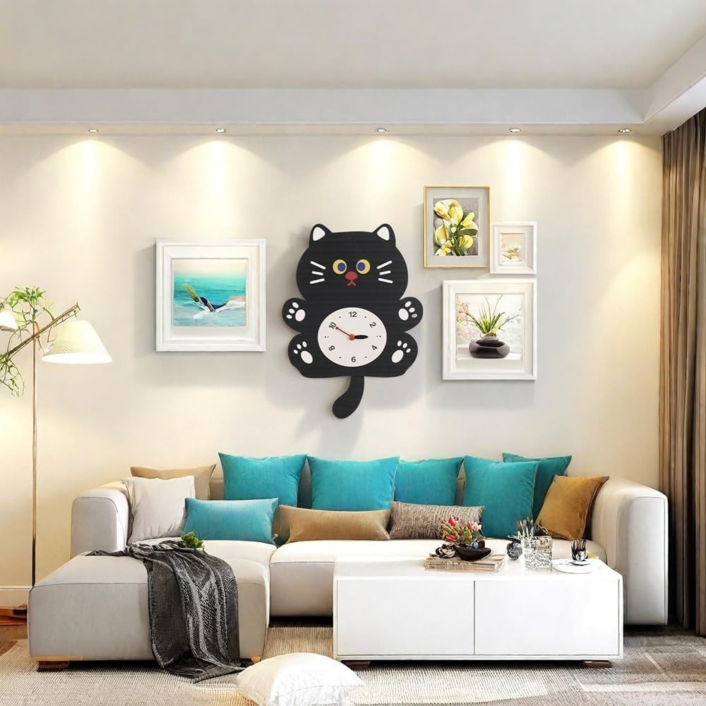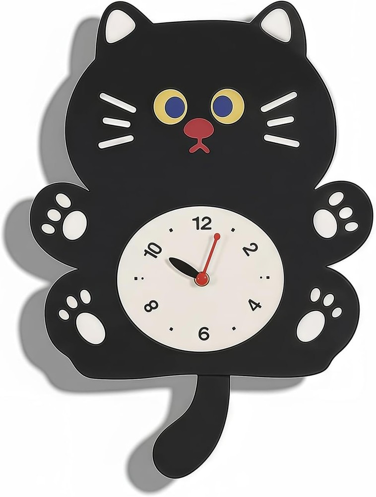 Adorable Cat Themed Swing Wall Clock, Silent Pendulum Clock, Easy to Read Analog Clock for Cat Lovers, Nursery, Kitchen, Cute Home Decor Gift -Black Charming Cat-Themed Aesthetic: Boasts an adorable cat design that elevates the look of any space—whether it’s adding warmth to a nursery, a playful touch to the kitchen, or a cozy vibe to a bedroom—making it a standout decor piece for cat lovers. Silent Non-Ticking Operation: Powered by a quiet movement mechanism that eliminates annoying ticking sounds, ensuring it won’t disrupt sleep in bedrooms or distract in living areas, ideal for noise-sensitive spaces. Fun Swing Pendulum Feature: Comes with a smoothly swinging pendulum that adds dynamic visual appeal, turning a basic clock into an eye-catching focal point while maintaining reliable timekeeping. Easy-to-Read Analog Display: Features clear, bold hour and minute markers paired with contrasting clock hands, making it simple for both kids and adults to check the time at a glance, no squinting required. Versatile Home Decor Fit: Designed to complement various interior styles—from modern to cottagecore—and works seamlessly in nurseries, kitchens, bedrooms, or home offices, doubling as a functional timepiece and a cute decor accent. Suitable for you are worried about what gifts to give to your friends, their parents, and children, this cute wall clock is the most suitable gift. Whether it is the elderly, young people, children, boys, or girls, they will all like it. .