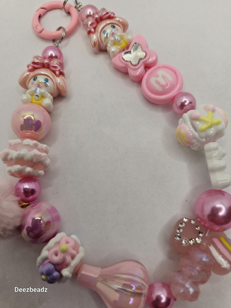this handmade bagcharm is inspired by sanrio characters. It was made with various styles of beads and charms.