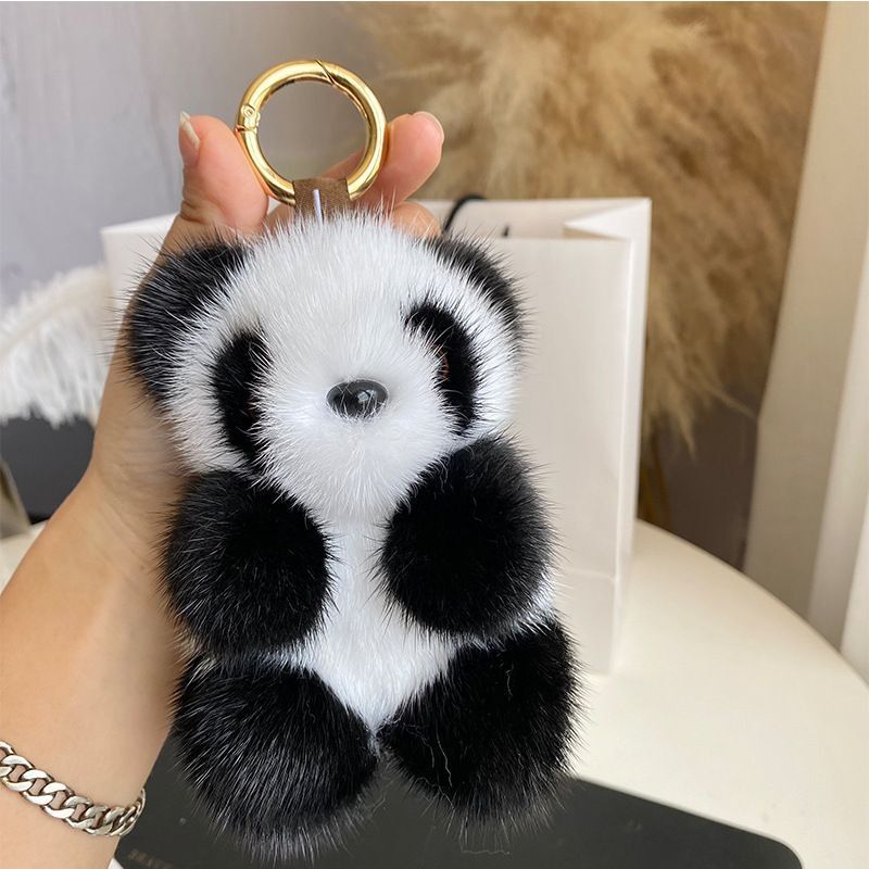 Adorable Panda Keychain 13cm Plush Faux Mink Fur Car Keys Cute Bag Charm Gift
