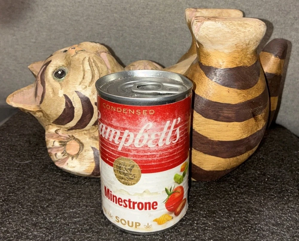 Adorable Tabby Cat Wood Figurine/Statue 5.75H Appropriate Measurements Height: 5.75" Width 10" Length: 4.5" Weight: 1 lb 12oz Item is in good used condition. Please note: the cat's left ear has a small piece of wood chipped off. Please see photos. Otherwise there are no other chips, nicks, scratches, cracks, damage, or repairs.