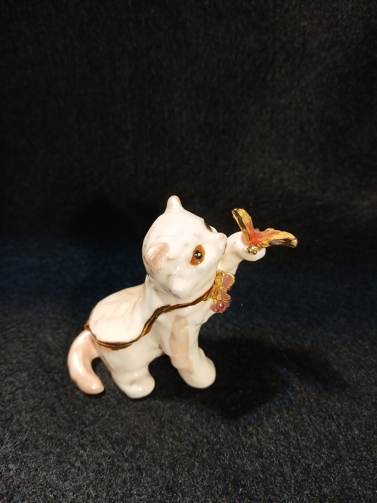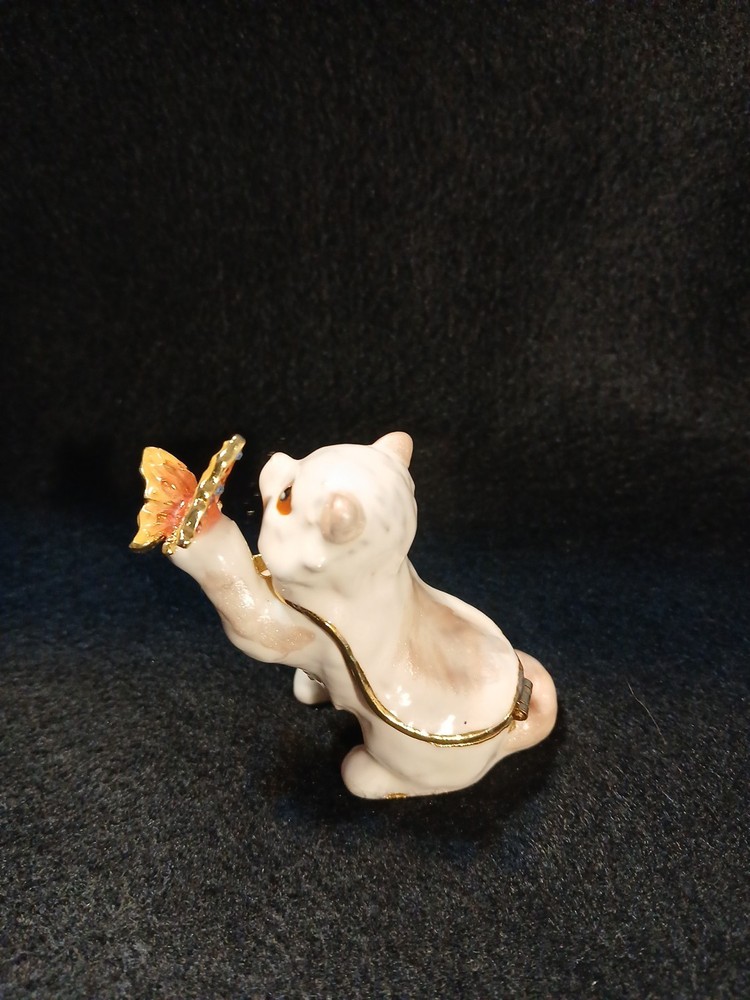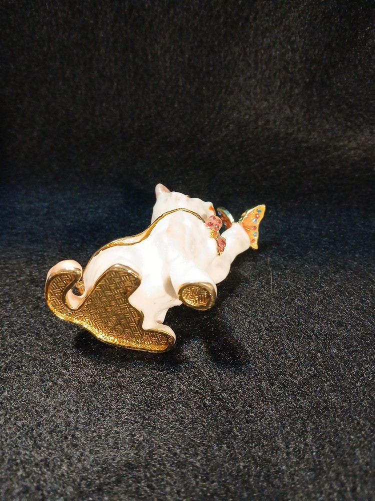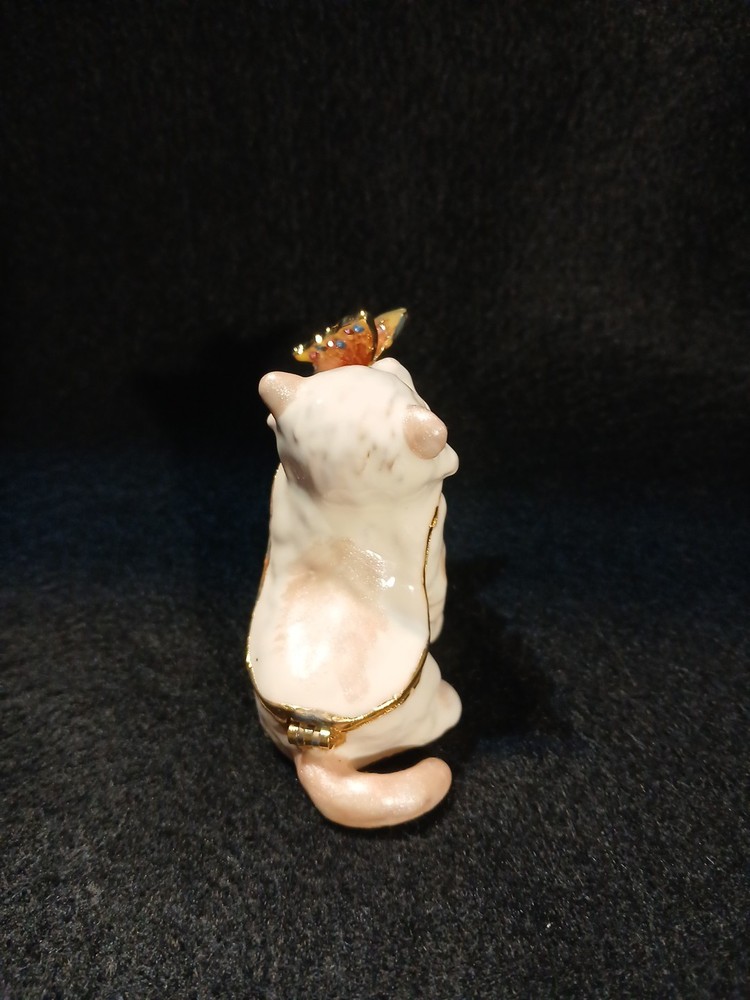 Collection: Keepsake Boxes Brand: Unbranded Color: White Subject: Cat Occasion: All Occasions Material: Metal Finish: Glazed Type: Trinket Box Theme: cat