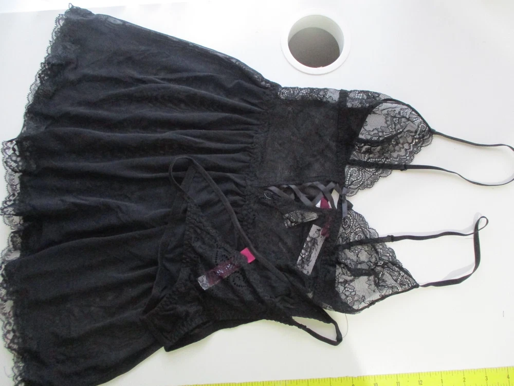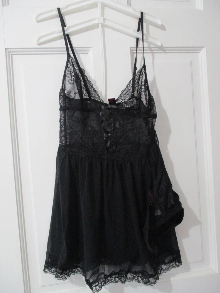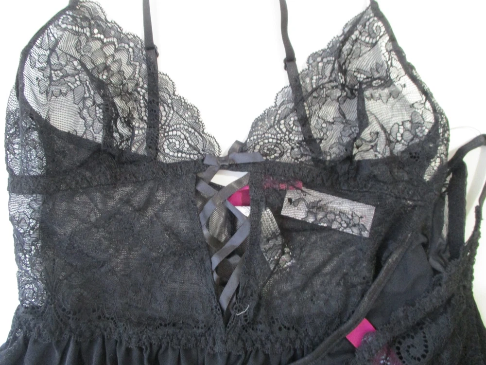 Adore Me Women's Yolandi Babydoll Top + bikini Black XS NWT This is not a returnable item, please see pics for details of babydoll, labels show the material of the pieces, Will be sent on a sealed plastic bag, SAME AS PICTURED.