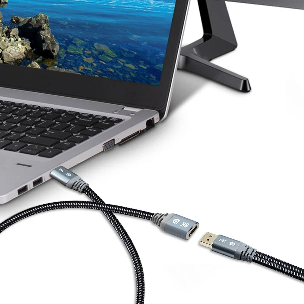 Adoreen 8K DisplayPort Extension Cable 25 feet, Braided DP to DP Extended 1.4 Cord(from 0.6-25ft) Male to Female,8K@60Hz 4K@120Hz 2K@165Hz 1080p@240HZ,HDCP,Extender Display Port with 5 Ties-NOT HDMI Product Details Size: 25ft-1PK Brand: Adoreen MPN: ARDPMF-25-1PK UPC: Does not apply EAN: Does not apply Brand: Adoreen Connector Type: DisplayPort Cable Type: Display Port Compatible Devices: PC, Monitor, Television Special Feature: Braided Package Dimensions ‏ : ‎ 8.07 x 7.83 x 2.28 inches; 1.15 Pounds Item model number ‏ : ‎ ARDPMF-25-1PK Date First Available ‏ : ‎ October 21, 2021 Manufacturer ‏ : ‎ Adoreen Best Sellers Rank: #4,999 in HDMI Cables Customer Reviews: 4.4 4.4 out of 5 stars 192 ratings Notice: Not DP to HDMI;Not Mini Displayport8K UHD DisplayPort CordAdoreen Ultra High Speed DisplayPort 1.4 Cables Support Resolution up to 8K (7680x4320) including 5K (5120x2880 @ 60Hz), 4K Ultra HD (3840x2160 @ 120Hz) and 2K 1440P@165Hz,1080P@240Hz .Support HDCP 2.2, HBR3, 32.4 Gbps bandwidth, DSC 1.2 display stream compression, FEC forward error correction, 32 audio channels and HDR10.Backwards compatible with DisplayPort 1.3/1.2/1.1. Extended Cable and Add 5 Cable Ties: Adoreen Display port Extension cable supports extending an existing DisplayPort cable with the DisplayPort extension cable for more convenient connection at office or home. When you need to plug frequently, it is a good choice to use our DisplayPort extender to reduce the wear of graphics card or display port High Reliability MaterialsAdoreen 8K DisplayPort 1.4 Cables are Made of 26-30AWG 100% pure solid copper with triple-layer shielding to resist interference and ensure stable signal transmission. Durable and thickening housing, 24K Gold-plated connectors to ensure a superior durability and reliability.The nylon braided jacket can resist corrosion and stand 10000+ plugs and unplugs. Wide Compatibility With Gaming MonitorCompatible with Samsung, Dell, LG, HP, ASUS, Acer, Alienware gaming monitors. Supports DP, DP++, and DisplayPort++.It will be so great to use Adoreen Displayort 1.4 cable to show your Cyberpunk 2077 gaming skill on RTX3080. Also compatible with graphics cards, like Radeon R9 290, Geforce GTX 980/1080, HD Graphics 4600,ASUS HD 7970 DCII. 2 Years WarrantyWe offer 2 years Breakage assurance for all of the Adoreen 8K DP 1.4 Cables in case of defective product.Please feel free to contact us if you have any questions or concerns. Our reliable customer service will reply within 24 hours.