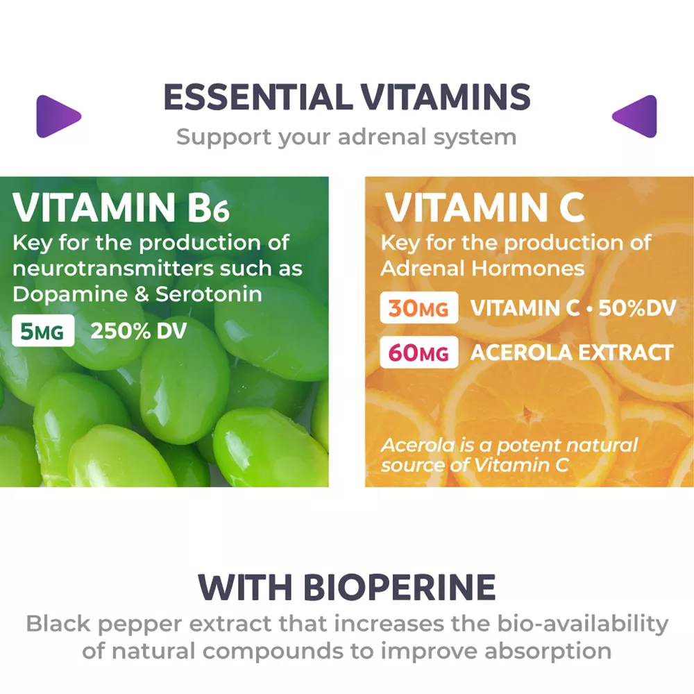 Effects: Adrenal Support,Reduce Stress Ingredients: Ashwagandha,Astragalus,Acerola, L-Tyrosine Directions: Take 2 capsules once daily after a meal. Shipping: Ships within 48 hours on working days. Shelf life: 2 years Description: Manage Stress: Too much cortisol flowing through the body can lead to decreased cognitive performance, imbalance, and more. Too little can bring on brain fog and restlessness. Use our Adrenal System Support supplement to achieve the proper balance by maintaining already healthy cortisol levels. Supports Adrenal Function: Supports the adrenal glands to help stabilize the body during times of stress. Document