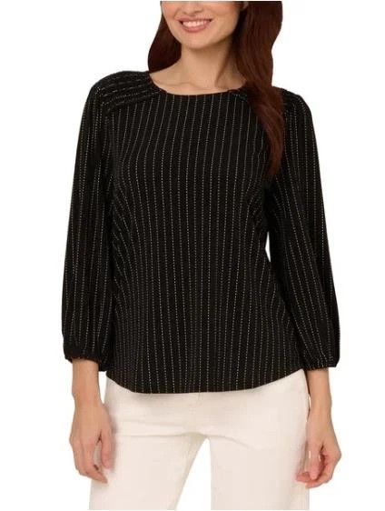 Adrianna Papell Women's 3/4 Sleeve Stretch Smocked Shoulder Blouse Size: Medium Color: Black Content: 95% Polyester / 5% Elastane