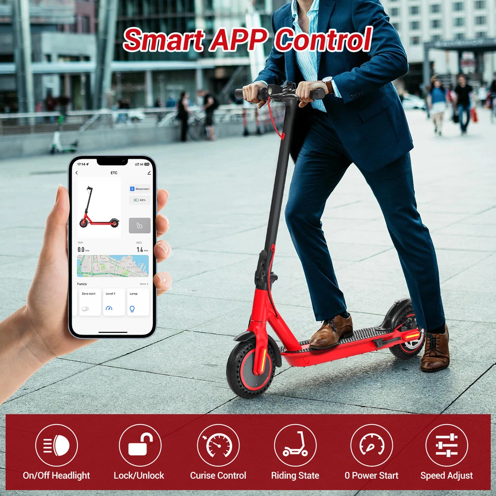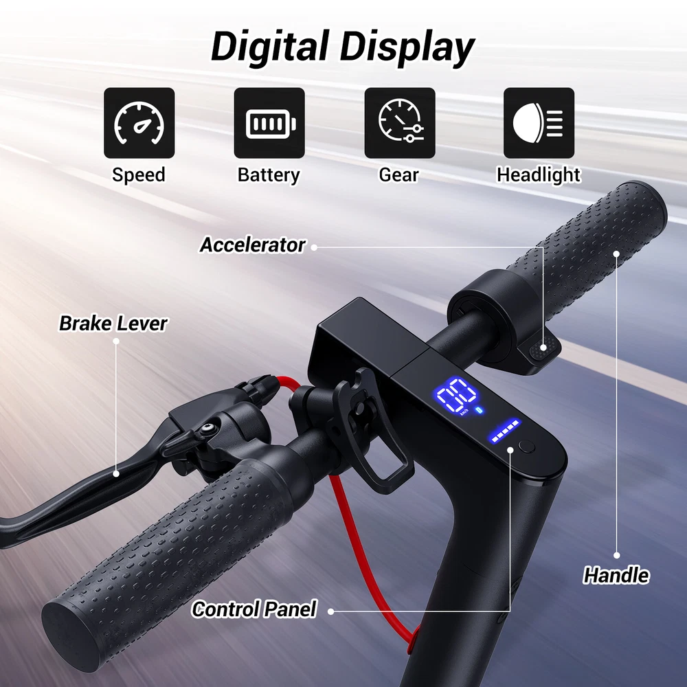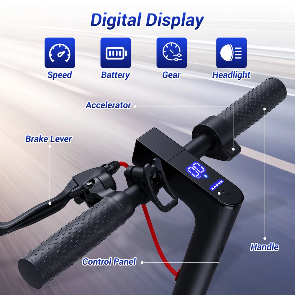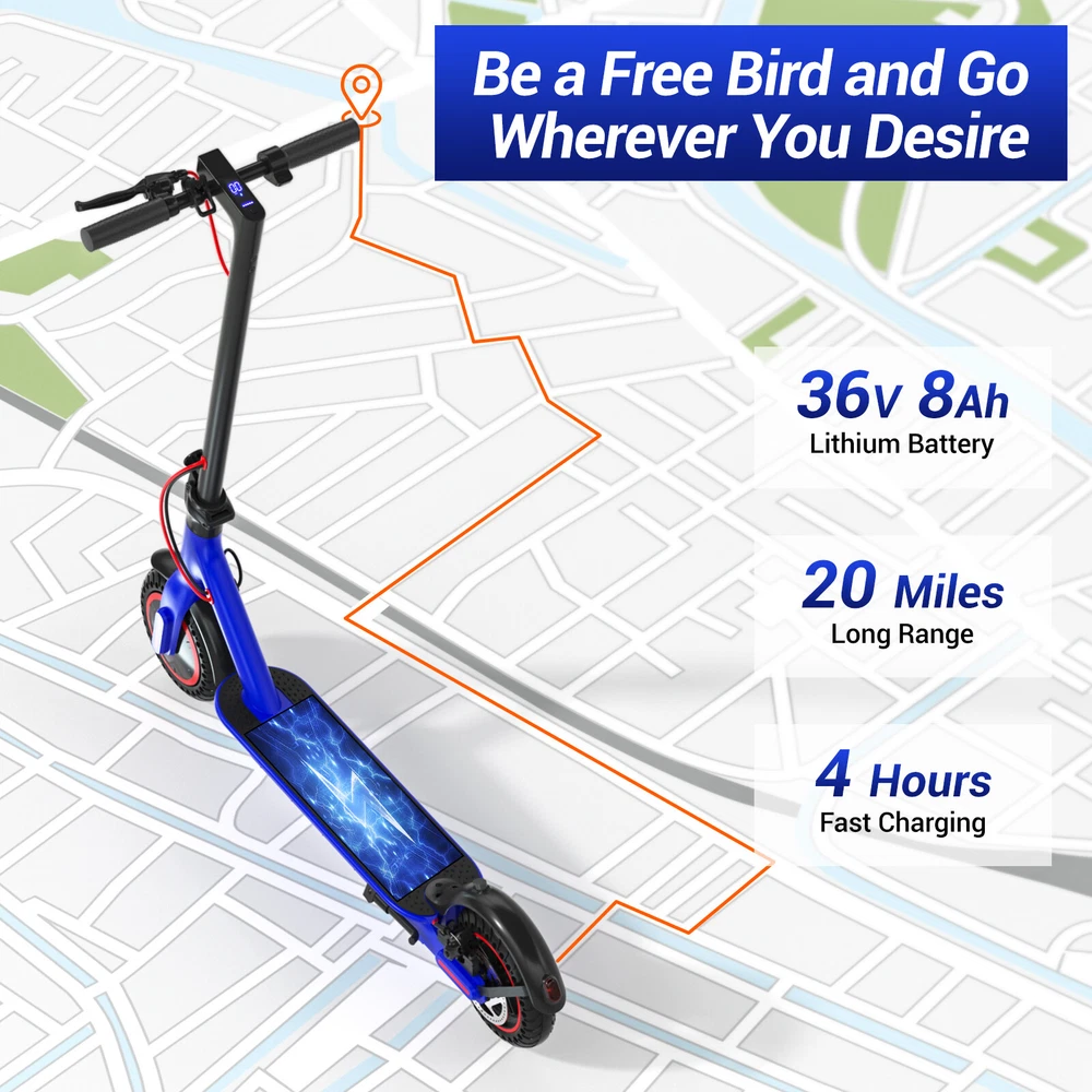 Folding Electric Scooter Adult 350W E-scooter Long Range With APP Electric Moped FEATURES Safe & Sturdy Frame】Our electric scooter adults have passed UL2272_Certified safety certification, and every electric scooter is strictly tested before sale. Our kick scooter for adults frame is made of high quality aluminum alloy, weighing only 28lbs, with a max load capacity of 220lbs, which is both stable and lightweight 【Upgraded Brushless Hub Motor】 Our electric scooter for adults is equipped with a powerful 350W brushless hub motor, the maximum output power can reach 500W, which can provide 20° climbing ability and 15.5Mph speed, the motor runs quietly and consumes low power. Our foldable e scooter for adults has a built-in 36V 8Ah lithium battery that can ride up to 20 miles on a single charge, say goodbye to range anxiety and enjoy a worry-free ride 【Stable and Safe Riding】 The bright headlight of the electric folding scooter allows you to see the road ahead at night, and the conspicuous rear warning light allows oncoming vehicles to notice you, and the disc brakes provide enough braking force for the electric adult scooters to ensure your safe riding.8.5-inch solid tires, no need to inflate, repair or maintenance, no need to worry about breakdowns 【Portable for Commuting】Our adult scooters electric is designed with one-step folding, you can fold it in seconds. Compact size after folding, you can put it in the trunk of the car, subway, elevator and other places, perfect for commuting 【Smart Application】Download the APP and pair the foldable escooter adults with your smartphone. After that, you can use the APP to operate many functions, such as: lock/unlock, turn on/off lights, custom speed and cruise control, etc SPECIFICATION Color: Black Frame Material: Aluminium Tires: Pneumatic tire Max Load: 100kg / 220lbs Max speed: 15.5MPH Mileage: 20Miles Grade Ability: 20 degree slope Mode Type of Motor: Brushless hub motor Battery Type: High quality lithium battery Battery Voltage: 36V Charging time: 3-4 hours Applicable People: Adults and Teen PACKAGE INCLUDED 1x Eletric Scooter 1x Charger 1 x Tool Kit 1x User Manual Payment Shipping Return Feedback Question Payment We accept payment via Paypal ONLY. Immediate payment is required & Shipping will be arranged only your payment is cleared. Shipping Same business day dispatch if paid by 4 pm EST(1 pm PDT). No shipping on weekend or Public Holidays & No responsibility for any customs duty. Return We stand behind our products. Items can be returned for exchange or full refund within 60 days from the date you receive your item. Return shipping is the responsibility of buyer unless the return is a result of our mistake (i.e., your receive the wrong item or damaged item). We will pay for shipping replacement back to you if an exchange is requested. If you want to initiate a return, simply clicks "Return this item" next to the transaction in My eBay, chooses a reason, and prints a return shipping label and packing slip. We’re automatically notified. Feedback Please leave us a FIVE star and POSITIVE feedback if you are satisfied with our product and service. Neutral or negative feedback will not solve problems happily. We believe communication will fix problems and hope every customer can have a good purchasing experience. Question All ebay message will be responded within 1 business day or less, except weekends and holiday!