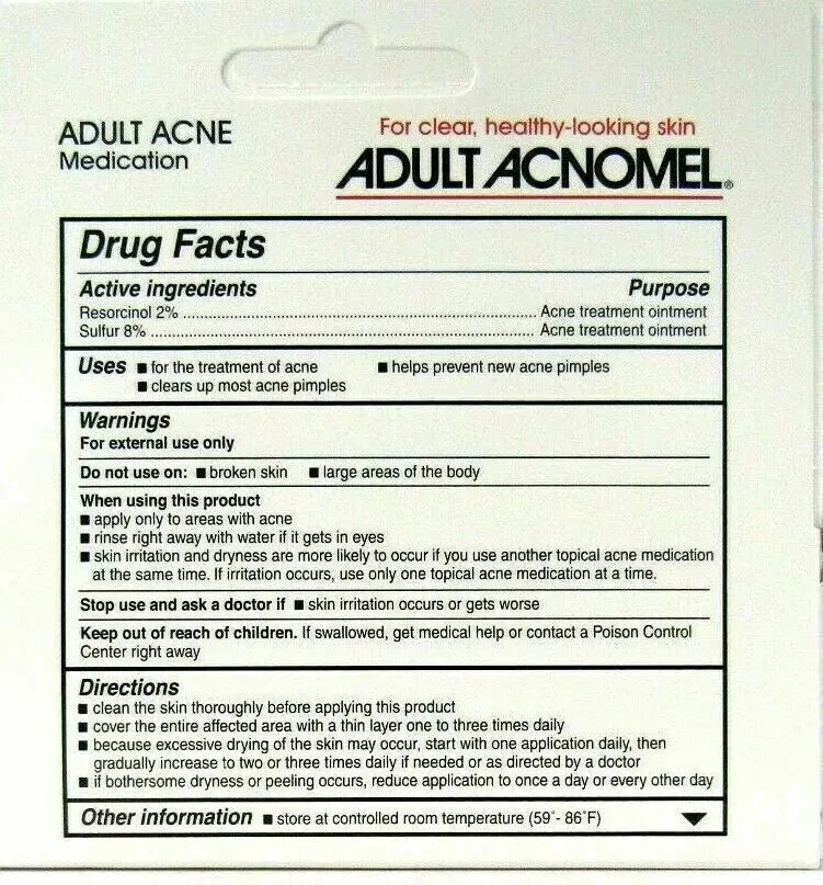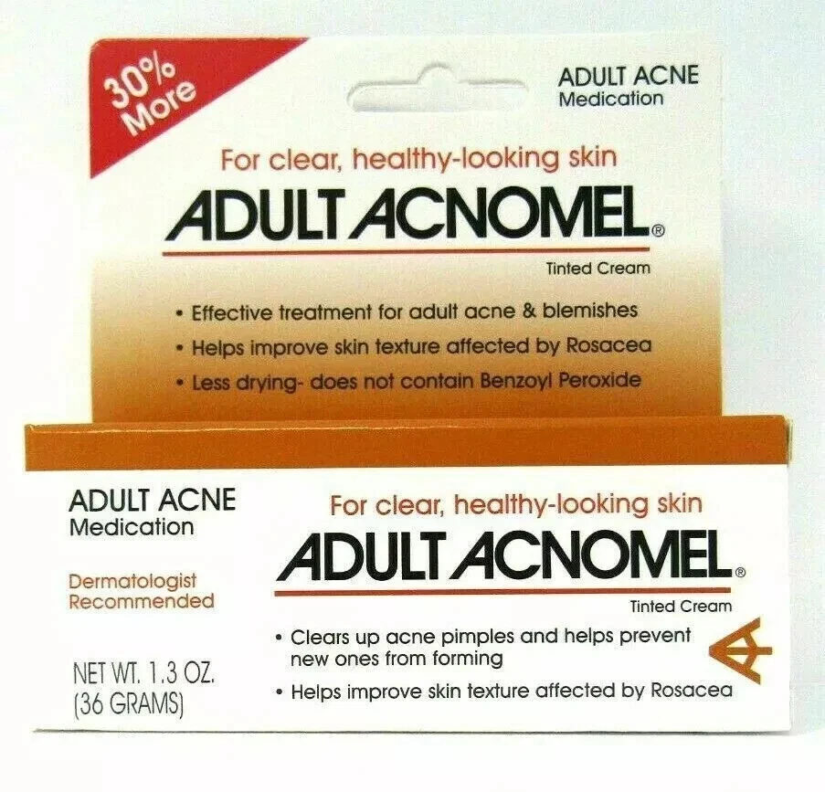 Adult Acne - Acnomel Tinted Cream 1.3 oz - 36 GRAMS Acnomel fights break-outs before and during occurances, eliminating existing blemishes and helping to prevent future breakouts. Deep cleans pores and absorbs excess oil to let clear, clean, healthy skin show through. It has been shown to be effective in the treatment of Acne Rosacea. Less drying without Benzoyl Peroxide. Clears up acne pimples. Helps to reduce to new acne pimples from forming. Tinted cream. Handling: We Typically ship all orders within 1-2 business day of payment. Tracking will be added as soon as possible. Ebays delivery dates are based on estimates of our typical delivery timeframe but on rare occasionas it may take an additional 24-48 hours for shipping/delivery. Please allow additional time if you do not see your item shipped immediately. Return Policy: All items qualify for returns within 30 days of receipt. Seller is responsible for return shipping on any item that is not damaged. Feedback: We take our reputation seriously, we buy and sell online, so we understand the value of trust. If you are unsatisfied with your order, please contact us and we will work with you to resolve it to your satisfaction. Disclaimer: Our receiving department does its best to verify and then enter the correct expiration dates for all incoming products. However, discrepancies do occur from time to time.