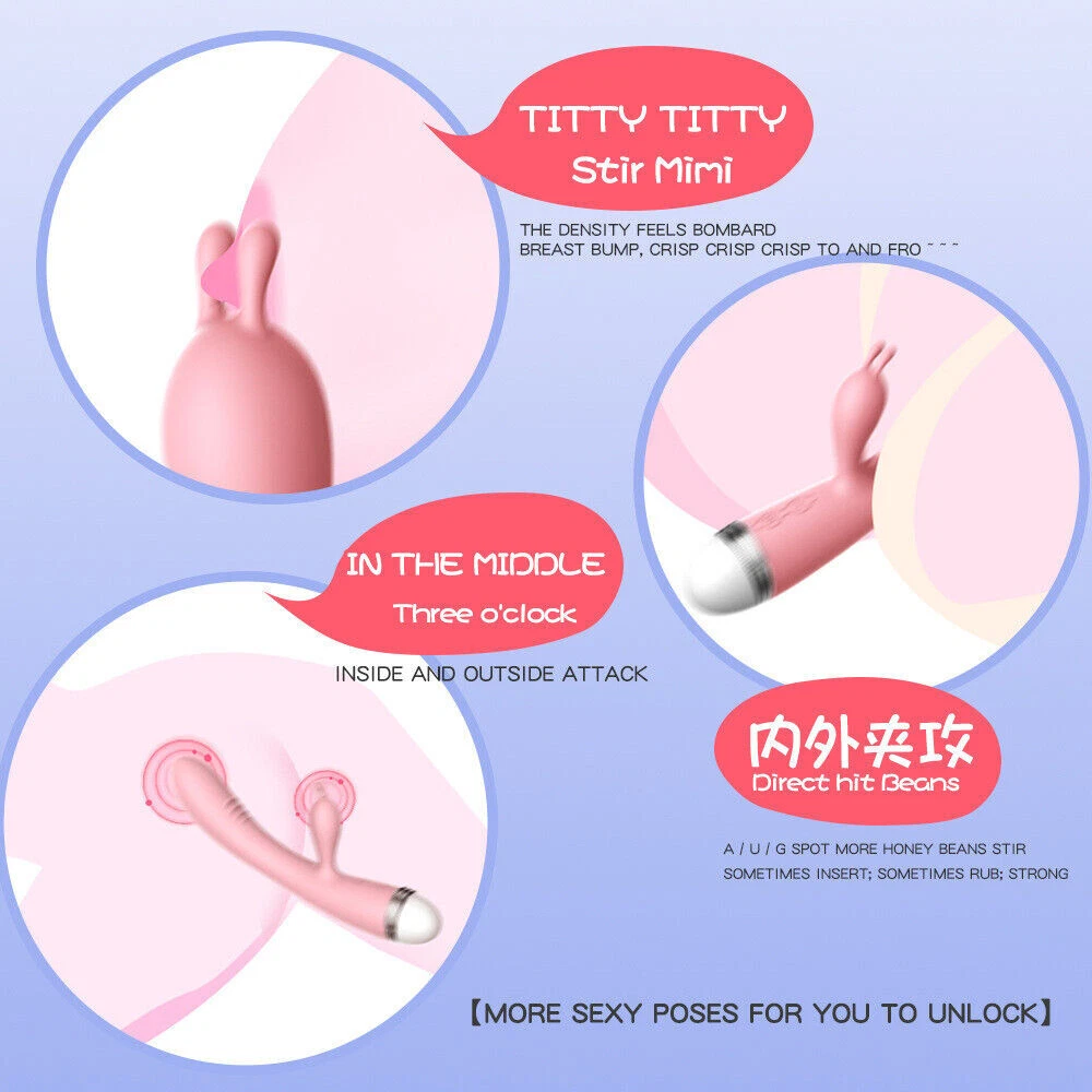 Dual Vibrator Dildo G-Spot Massage Wand Clit Stimulator Sex Toys for Women Men