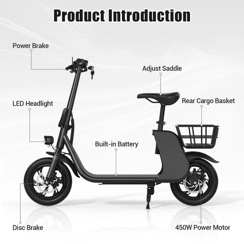 $ 37.07500W Electric Scooter with Seat, Basket & 21-Mile Range