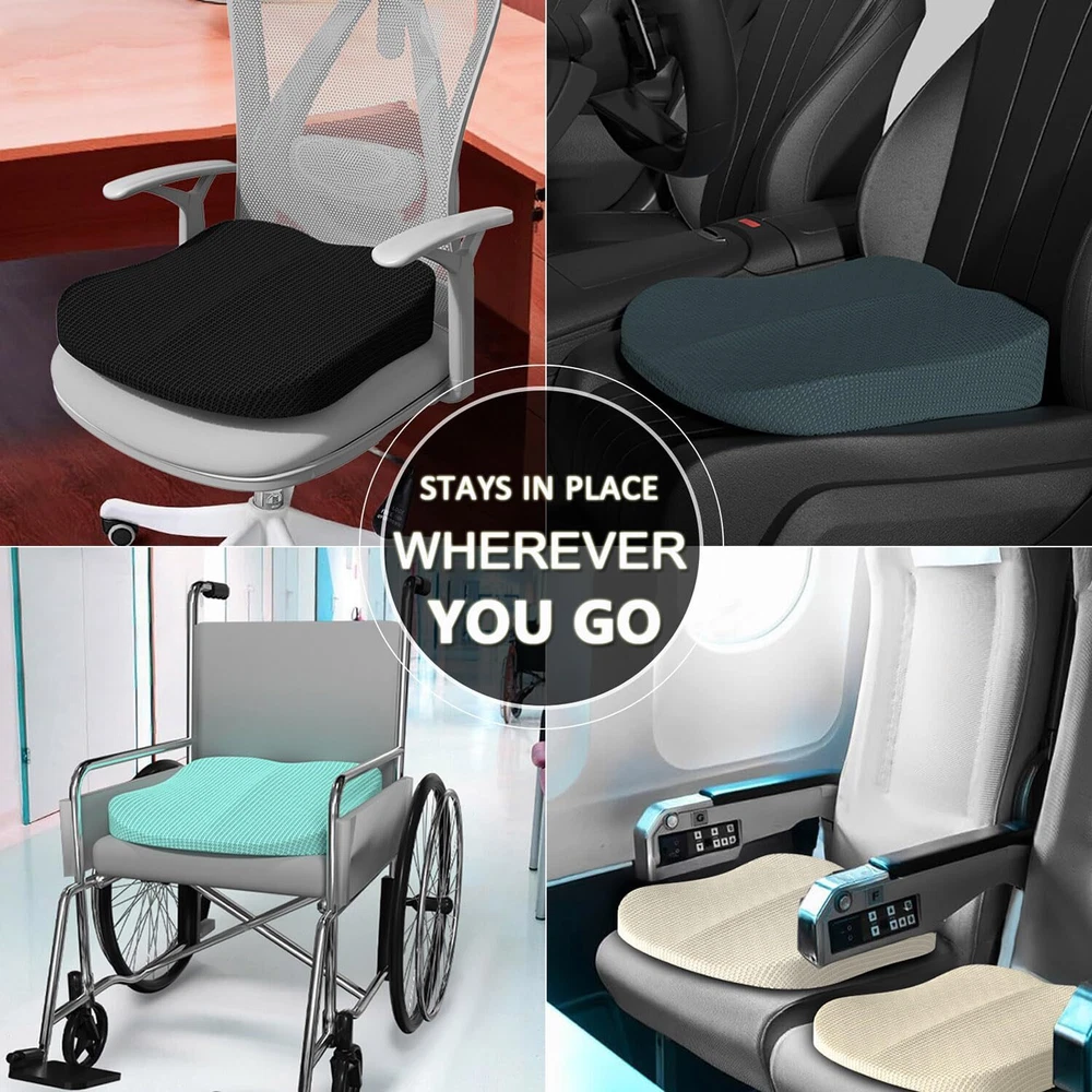 Road Trip Essentials for Adults: Transform your driving experience with our adult seat for car! Elevate your seated position. Enhances your visibility and provide added comfort. Picture yourself effortlessly gliding through traffic, enjoying newfound confidence and safety as you sit tall behind the wheel. Provide Comfort All Day: Experience unparalleled comfort with our high-density memory foam seat cushion, designed to provide optimal support and alleviate pressure on your tailbone and lower back, ensuring long-lasting comfort during extended periods of sitting. Ideal for those suffering from sciatica, tailbone injuries, or other lower back issues. Premium Memory Foam & Breathable Mesh: Our car seat cushion is constructed with supportive slow-rebound high-quality memory foam that retains its shape even after prolonged use. The cushion's cover is crafted from breathable, hypoallergenic mesh fabric, ensuring superior air circulation and preventing heat buildup. Suitable for use all year round. Ergonomic Design & Practical Gift Idea: Our chair cushions feature an ergonomic contour that promotes healthy posture, evenly distributing weight and enhancing spine alignment. Ideal for office chairs, car seats, wheelchairs, gaming chairs, and home use. An excellent gift for anyone who spends long hours sitting. Show you care by providing the gift of comfort and support. Removable Cover & Non-Slip Bottom: The office chair cushion comes with a removable cover that is easy to clean. Simply unzip and toss it in the washing machine to keep your cushion fresh and hygienic. Equipped with a non-slip rubber bottom to ensure your cushion stays securely in place on any surface, providing stability and preventing unwanted movement during use. Package & : The driver seat cushion is Shipped Compressed. Remove the package and shake it. It will take 24-48 hours to fully expand. The customer's product experience has always been our priority, if there is any problem about this coccyx cushion, please feel free to us.