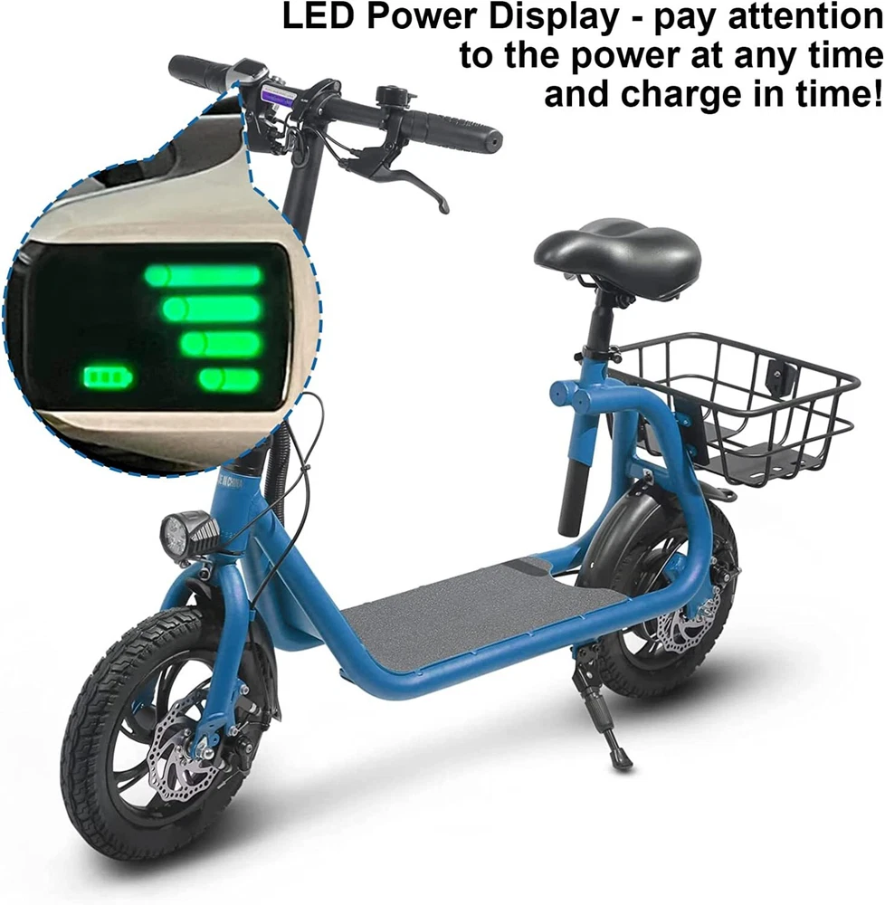Adult Sports Electric Seated Scooter Folding E-Bike Commute UL 2849 Certified Feature Powerful Motor & Long Range: The adult electric bike comes with a 450W powerful brushless motor and large 40 cells 8.0Ah Lithium-ion battery, enables a 15-mile range, and a max speed of 15.5 mph. Portable & Lightweight: The foldable electric bike only weighs 42 lbs and can comfortably accommodate riders up to 265 lbs. This adult electric scooter can be easily folded and stored in the car trunk, which makes it perfect for commuters and students. Safe & Durable: With double braking systems, the front and back disc brake of the e-bike give you double safety. The 12" tires built for multi-terrain of daily use or outdoor activities. Detail Oriented Design: The E Scooter come with 13 x 11 inch rear carry basket and scooter deck, front LED light and rear reflectors for safety. Easy Assemble Required: The only assembly required is the seat and basket attachment. The handle bars are folded and just need to be erected. All tools are provided in the box. The E-bike have passed UL 2849 safety standard detec tionhttps://productiq.ulprospector.com/en/profile/ Package Listing 1 X E Scooter 1 X Charger 1 X User Manual 1 X Tool Kit After you receive the adults scooter, before first Riding, please do the follows: 1. Inflate the Tires before Riding. 2. Complete Charging (Light RED: Charging, Light Green: Charging Compelte). Payment Shipping Return Feedback Question Payment We accept payment via Paypal ONLY. Immediate payment is required & Shipping will be arranged only your payment is cleared. Shipping Same business day dispatch if paid by 4 pm EST(1 pm PDT). No shipping on weekend or Public Holidays & No responsibility for any customs duty. Return We stand behind our products. Items can be returned for exchange or full refund within 60 days from the date you receive your item. Return shipping is the responsibility of buyer unless the return is a result of our mistake (i.e., your receive the wrong item or damaged item). We will pay for shipping replacement back to you if an exchange is requested. If you want to initiate a return, simply clicks "Return this item" next to the transaction in My eBay, chooses a reason, and prints a return shipping label and packing slip. We’re automatically notified. Feedback Please leave us a FIVE star and POSITIVE feedback if you are satisfied with our product and service. Neutral or negative feedback will not solve problems happily. We believe communication will fix problems and hope every customer can have a good purchasing experience. Question All ebay message will be responded within 1 business day or less, except weekends and holiday!