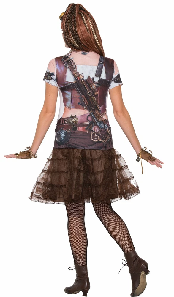 Adult Women's Steampunk 3D Shirt - This product includes 3 dimensional detailed character printed tee. It's a costume in an instant. Does not include wig, googles, gloves, net tights and shoes.