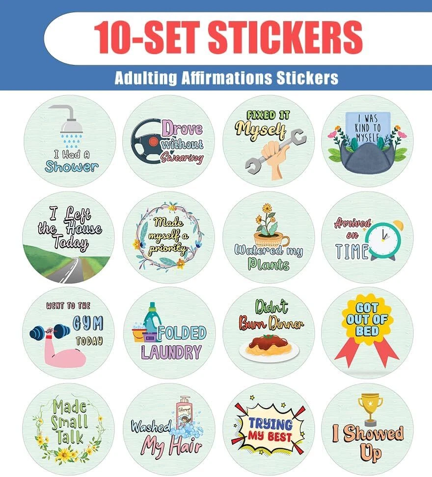 16 UNIQUE DESIGNS INSPIRING STICKERS FOR YOUR DIY PERSONALIZED DECORATIONS - Creanoso Adulting Affirmations Stickers (10-Sheets). These colorful and uniquely inspiring round shaped stickers are the best tool for DIY decoration and personalization of your belongings. GREAT STOCKING STUFFERS , TEACHING SUPPLEMENTARY MATERIALS, AND GIVEAWAY - Great stocking stuffers gifts for Boys, Girls, Teens, Kids. A perfect design to give during classroom school activities, home schooling,birthdays, anniversaries, family day, and any other special occasions. MADE WITH DURABLE AND WATERPROOF MATERIALS - There is a lamination or coating to make the stickers high water resistant, and WILL NOT not fade from the water. The stickers can stick it anywhere you like, and it sticks there and lasts a long time. A COLORFUL AND DECOR STICKER DECAL - Each sheet with 16 individual round stickers. There are 10 sheets , with a total of 160 pcs of stickers. STICKER SIZE: 1.5 INCHES IN DIAMETER Adulting Affirmations Stickers (10 Sets X 16 Designs) COLORFUL AND COLLECTION OF TEXT STICKERS • Well designed. • Very encouraging. • Self-adhesive. Adulting Affirmations Stickers (10 Sets X 16 Designs) are super fun to collect; you can't have just one! That's why you will find a selection of stickers right here. Each package comes with different stickers in a variety of designs. Stick them here, stick them there, stick them everywhere! Everyone will love these self-adhesive stickers. These colorful stickers are perfect for any adults and these come with very inspiring messages and bright pictures. A fun, inexpensive way to add a decorative, notes, and stationery. Delight yourself with uplifting messages designs that are very encouraging. Adulting Affirmations Stickers (10 Sets X 16 Designs) perfect for giveaways, behavior incentives, prizes! These stickers are acid-free, nontoxic, and safe for use on photos. This product comes with a 60 days money back guarantee. You can return them to us for a full refund.