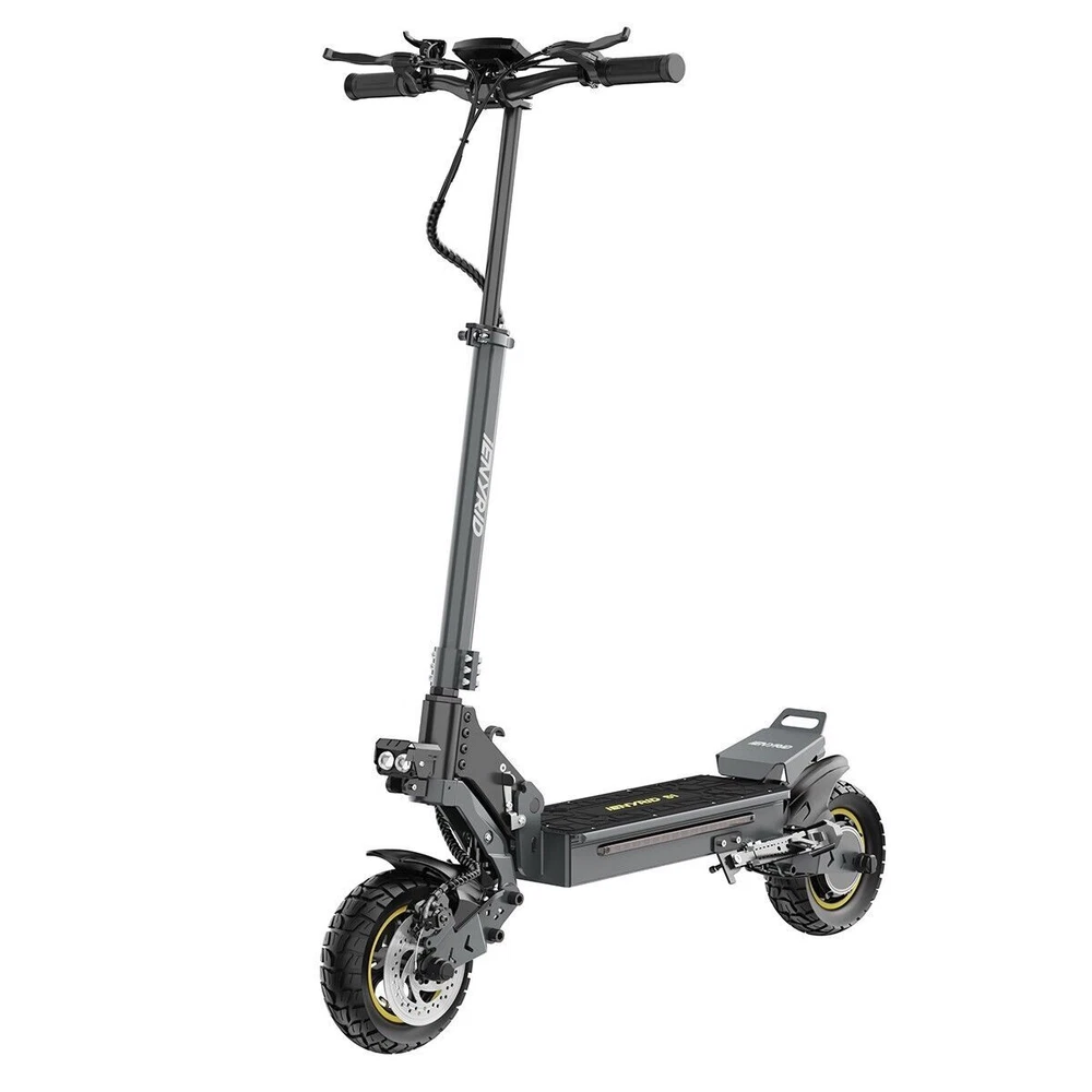 iENYRID 700W 48V Adults Electric Scooters Dual Motors Drive Commute Off Road E-Scooter 2025 Upgraded iENYRID Electric Scooter S-A Foldable Electric Scooter comes with a 700Wh (48V 15Ah) battery assisting 19-25 miles cruising range. S-A becomes an excellent choice for high-quality and comfortable riding. It is suitable for commuting to work, shopping in supermarkets, mountain cross-country and traveling. Powerful Motor & Long Lasting Battery S-A electric scooters f With powerful Dual 700W Motors, detailed parts, detachable seat and foldable design, brings faster acceleration and climbing ability to this electric scooter, which can reach 28 mph max and max 30°climbing angle. Comfortable Commuting IENYRID S-A adult off road electric scooter comes with upgraded 10-inch off-road tires and front and rear dual suspension to ensure max comfort even on bumpy roads. Also, the aviation-grade aluminum frame is stronger and lighter, which makes the scooter much more elegant to look at and handle as well. And it has a max load of 280 lbs. Foldable Electric Scooter Easy to fold and carry, carry it on public transportation or store it in your car to get to wherever you want. Dynamic, Easy storage in car trunks and other compact spaces, occupying little space and suitable for travel and transportation commute. IPX5 Super Waterproof & LED Intelligent Lighting System The waterproof frame and deck are tightly sealed against water, accredited with an IPX5 ingress protection rating painting. The head of the e scooter is equipped with three LED lights with different functions to ensure safe and worry-free riding at night. Specification: Type: Electric Scooter for Adults Model:S-A Motor: 700W Tyre Type: Air tires Battery specification: 48V 15AH Charger specification: Input 100-240V 50/60Hz 2.0A, Output 54.6V 2A Max Controller specification: DC48V/36A Charging time: 6-8 hours Frame Material: Aluminum alloy Light: Front LED headlights, sidelights, and taillights Drive mode: front and rear wheel dual drive Max Speed: 28MPH Max Range: 19-25 Miles Max Load: 265 lbs Maximum climbing ability: ≤ 30 ° Tires: 10 in off-road pneumatic tires Frame Material: aluminum alloy Braking method (front/rear): mechanical braking Front shock absorber: Yes Rear shock absorber: Yes Front headlights: integrated with horn Tail lights: Yes Edge light: Yes Brake lights: Yes Net Weight: 65 lb Front and rear tire pressure: 50 ± 10psi Product Size (L x H x W): 47.24 x 49.6 x 23.62 in (unfolded), 45.67 x 20 x 23.62 inch (folded) Package Size: 128*24*48 cm Package Contents: 1 x Charger 1 x User Manual 1 x Electric scooter Warning: It is illegal to ride electric scooters on public roads (except under very specific circumstances), pavements or cycle paths. They are intended only for use on private land with the owner’s permission.