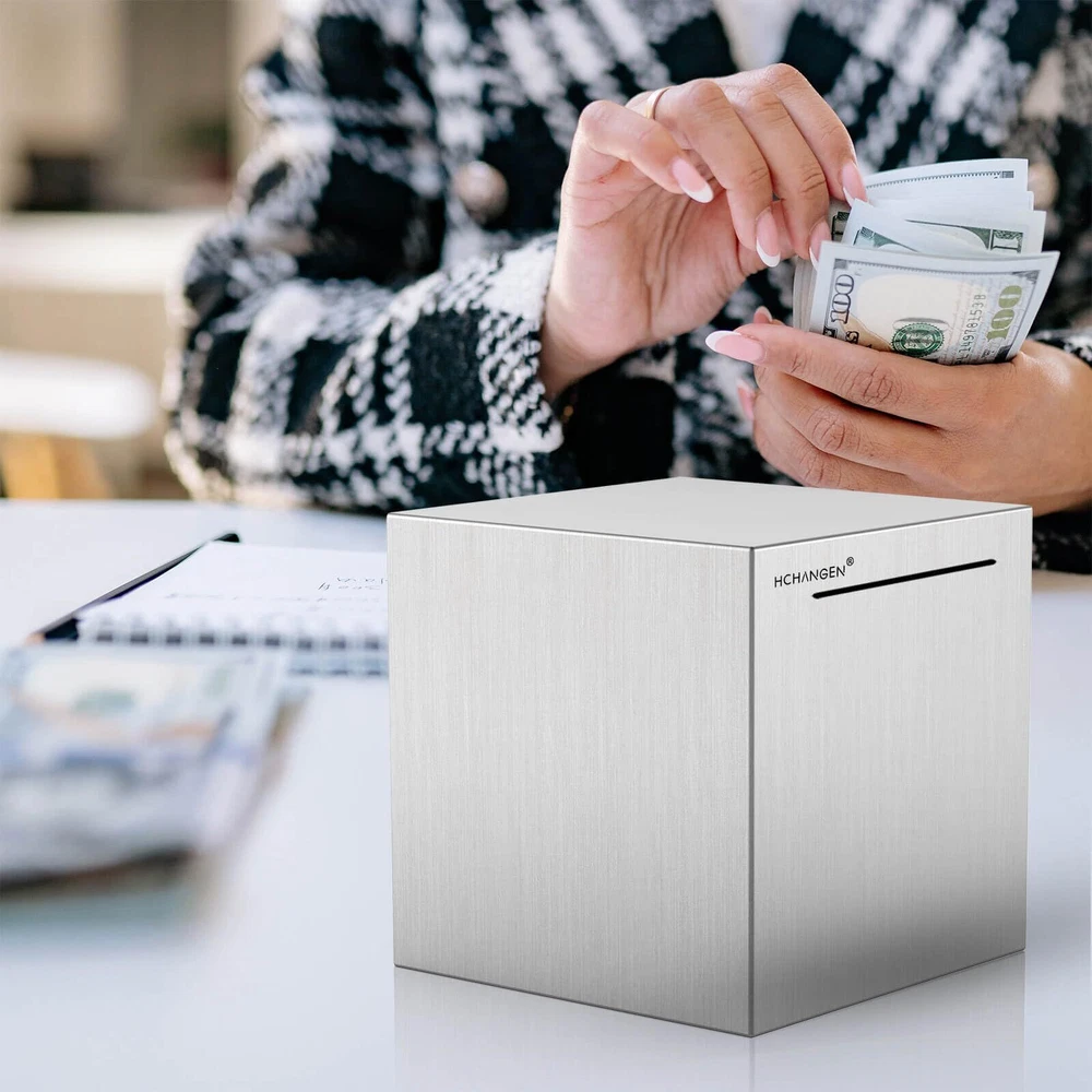 Unbreakable design: Made from high-quality stainless steel, this Metal Money Bank is virtually unbreakable, ensuring that your savings are always safe and secure. Perfect as an Adults Piggy Bank Convenient size: Measuring 4.72 inches, this sleek and stylish Stainless Steel Piggy Bank is the perfect size for any desk or nightstand, making it easy to store your savings and keep them close at hand Must break-to-open feature: When you're ready to access your savings, simply break open the Metal Money Bank and enjoy the fruits of your labor. This unique feature makes it a must-have Stainless Steel Piggy Bank Suitable for all ages: Whether you're an adult looking to save for a special purchase or a child learning about the value of money, this Adults Piggy Bank is an excellent tool to help you stay on track. With its stylish design, this Metal Money Bank is perfect for everyone Great gifts idea: With its durable construction and sleek design, the HCHANGEN Piggy Bank for Adults makes for a thoughtful and practical gift for any occasion. This Stainless Steel Piggy Bank is the perfect gift for your loved ones