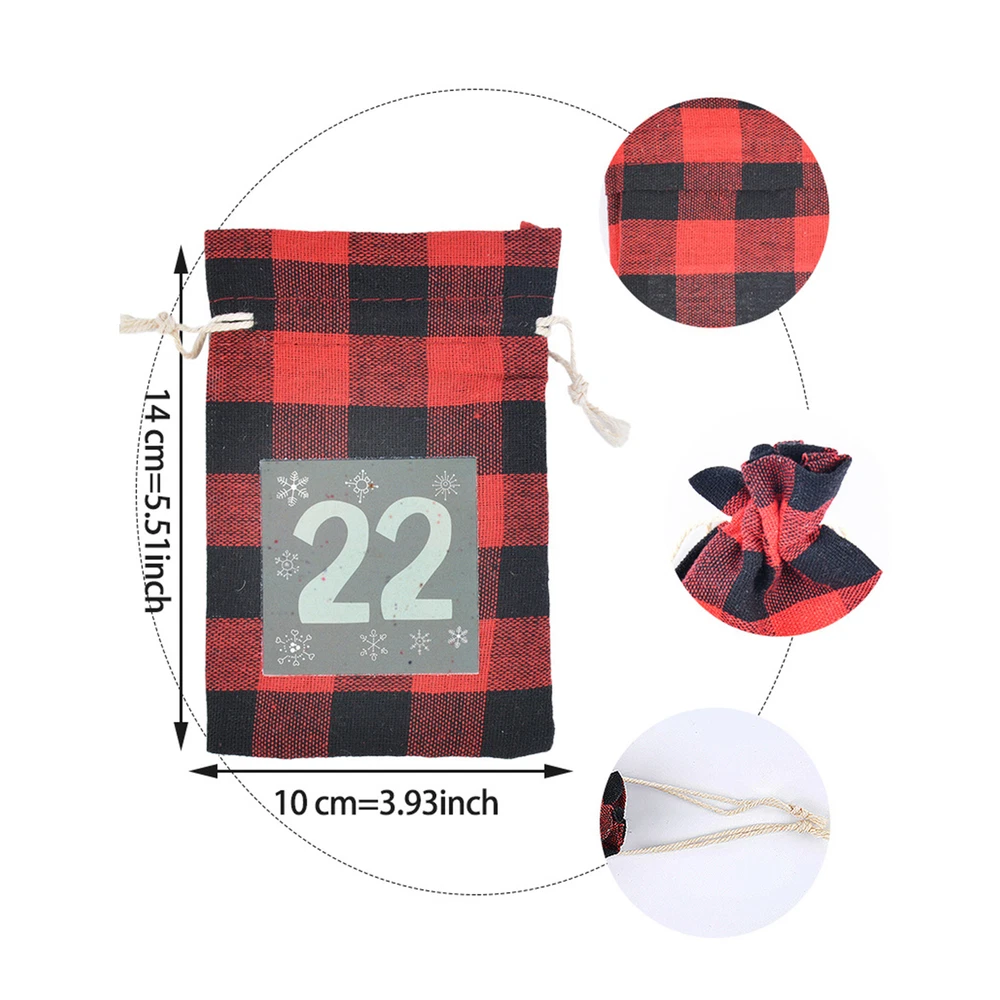 Advent Calendar Hanging 24 Days Christmas Candy Bags Drawstring With 24 Clips Bullet Points: Daily Delight: Amplify your holiday spirit by opening a bag daily from 1 to 24. With 24 uniquely designed bags, the Advent Calendar will enhance the Christmas countdown and add to the festive fun Establish Better Relationship: By featuring a variety of toy in each bag, the Advent Calendar Bags fosters interaction between parents and children, generating excitement and anticipation for Christmas Day Stand Wear and Tear: Made of high-quality cotton materials, each bag is carefully made to ensure its durability and safety, making sure they can still maintain a good state after multiple uses Creating the Festival Ambiance: Is the perfect holiday decoration choice, can be used to decorate Christmas trees, decorate the room with Christmas socks, and the red and black checkered design is classic and full of festive atmosphere Extensive Application: Lift your wedding, childrens birthday party, or Thanksgiving decoration game with these Christmas Advent Calendar Bags. With the ability to function as a calendar, they are the perfect choice for a variety of exciting activities Perfect for weddings, children's birthday parties and Thanksgiving decorations, each bag has a unique surprise in store for you. Made endurable, it's a great countdown tool that is suitable for any occasion. Specification: Name: Christmas Advent Calendar Bags Product material: cotton Number of bags: 24 Number of clips: 24 Cotton rope: about 10m/32.8ft Bag size: about 10x14cm/3.94x5.51 inches Packing List: 24 * Christmas Advent Calendar Bags 24 * clips 1 * cotton rope 1.You can make a Credit payment via Paypal.Paypal will let you use MasterCard,Visa to pay. 2.Payment should be completed within 5 days after auction closed, or unpaid dispute will be filed for an closing auction.An unpaid case will be filled after 4 days. ● We strive for 100% customer satisfaction ! ● Positive Feedback is very important to us. ● We hope that you contact us immediately BEFORE you give us neutral or negative feedback, so that we can satisfactorily address your concerns. ● We promise to offer the lowest price and high quality produce. Dear buyers : ● Welcome to my store ! ● Your satisfaction is our top goal,we appreciate your patronizing. ● If you have any questions, please contact us before leave negative or neutral feedback, we will try our best to solve the issue to your satisfaction, thanks ! ● If you are satisfied with our service, please rate the details of the transaction (Detailed Seller Ratings) on eBay. ● Please always talk to us via ebay Message. ● We appreciate your business and look forward to growing our e-Bay sales with satisfied customers.