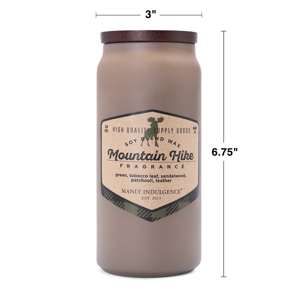 Manly Indulgence Mountain Hike Scented Jar Candle for Men, Adventure Collection, Gray, 15 oz - Up to 60 Hours Burn, Soy Blend Wax, USA Poured MOUNTAIN HIKE | Breathe in the scent of adventure, with leather, sandalwood, and a touch of citrus dancing on the air. Tighten your shoelaces and smell the earthiness of the forest around you. OAKMOSS | Breathe in the fresh mountain air, blending green herbals, sandalwood, leather, and oakmoss. Lace up your leather boots and enjoy your Mountain Hike. FRAGRANCE | T: Green, Citrus, Tobacco leaf M: Tobacco, Sandalwood, Amber, Patchouli B: Sandalwood, Oak moss, Leather BURN | Featuring one premium cotton wicks, this soy wax blend candle is a must have for the adventure seeker in your life. CAREFULLY CRAFTED | This 15 ounce candle from the Adventure collection by Manly Indulgence is proudly poured in the USA. The scent of adventure to match your dynamic, thrill seeking attitude The Adventure Collection by Manly Indulgence combines dynamic fragrance inspired by nature to transport you the great outdoors. These masculine candles are poured into a decidedly cool can shaped jar, sprayed in bold colors and topped with an inset wood lid, the Adventure collection takes you on an exciting expedition. This smoky gray, beer can style glass candle transports you to the mountains with notes of sandalwood, tobacco, oakmoss, and leather scents. A kraft paper label is accented by colored plaid and the unofficial mascot of the outdoorsman - a moose. An adventure in the mountains. This fresh air candle is inspired by the earthiness of the mountains. Citrus, tobacco leaf, and leather notes add rich depth to this natural scent. This candle boasts a high fragrance percentage for a powerful burn packed full of fragrance. The vessel is inspired by classic beer cans, canteens, and drinking glasses. An inset wood lid finishes the look for a masculine, yet sleek design. After the candle has been burned, the glass makes for a fun decor piece that can be used as a pen cup or filled with some fresh cut blooms. Shipping We offer FREE shipping on all orders! We ship within Three business days of payment, usually sooner. We use a selection of shipping services such as UPS, FedEx, USPS etc. We only ship to the lower 48 states, no APO/FPO addresses or PO Boxes allowed. Local pickups and combined shipping options are not provided at this time. International buyers – please note: Import duties, taxes, and charges aren't included in the item price or postage cost. These charges are the buyer's responsibility. Please check with your country's customs office to determine what these additional costs will be prior to bidding or buying. Order Cancellation Policy * Order Cancellation Policy ** You can return a product for up to 30 days from the date you purchased it. 1. The seller reserves the right to cancel the special case only due to eBay cancellation fee. 2. The decision of seller is the final. 3. The seller will respond to the cancellation request within 2 business days. Please wait for the result of cancellation. 4. In case the cancellation is not completed by some reasons, the buyer can follow the options below to get the refund. 4.1 The buyer can reject the item when it arrives. 4.2 The buyer can send the item back to the seller within 30 days If the buyer receives item (USA Shipment ONLY). The seller will provide the FREE return label to the buyer when the buyer opens " Return Item" case on eBay by using the reason as "Change my mind" ONLY. 5. When buyer has placed the order. The order will be processed and completed by automatic warehouse system within 5 minutes. In case that buyer sends the cancellation request after 5 minutes of placing the order, the request will be rejected. **Sending direct message to cancel the order is not allowed for every case.* Return Policy - If buyer would like to return the items for refund or replacement, please CONTACT SELLER to receive the free return label from seller. The refund or replacement will be processed with the tracking number of return label which is provided by seller only. The other ways of return which are not approved by seller will not be processed for the refund or replacement. Return You can return a product for up to 30 days from the date you purchased it. Any product you return must be in the same condition you received it and in the original packaging. Please keep the receipt. Payment We accept payment by any of the following methods: eBay Payments Please pay as soon as possible after winning an auction, as that will allow us to post your item to you sooner! Feedback Customer satisfaction is very important to us. If you have any problem with your order, please contact us and we will do our best to make you satisfied. Contact Us If you have any queries, please contact us via ebay. We usually respond within 24 hours on weekdays. Please visit our eBay store to check out other items for sale! Thank you for shopping at our store.