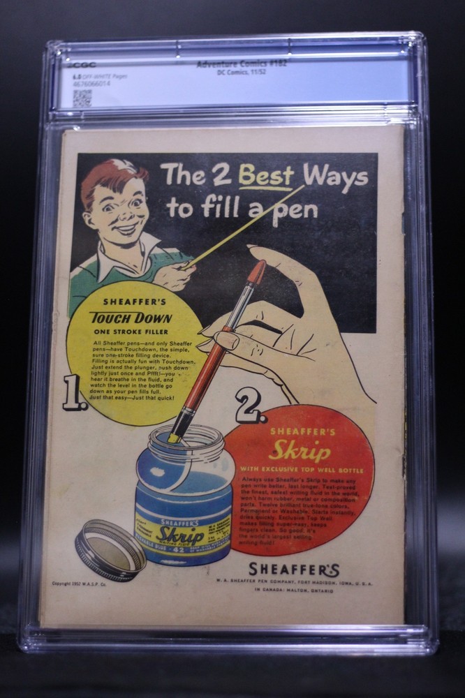 Link to our BEST items!! Link to our ENDING items!! Link to our FAQ page !! Link to our NEWEST items!! Item: Adventure Comics (1938) #182 Win Mortimer Superboy Cover CGC 6.0 Off-White Pages Special Notes: This issue is a First Printing! We do not use stock photos! What you see in the pictures is what you will be getting. Publication Date: Nov 1952 (The date in the title refers to the year the title started) Writer : Various Interior Artist: Curt Swan Cover Artist: Win Mortimer Condition: CGC 6.0 Fine Page Quality: Off-White Pages Bar Code: 4676066014 SHIPPING: All pricing is based on the weight of the package and your location. Package Weight: 3 lb[s] Package Size: 14x12x6 We charge exact shipping costs per USPS with NO handling charge. You can check our shipping quotes on the USPS website. For the convenience of the winner, we offer shipment via Priority Mail or Media Mail, when shipping to an address inside the USA. For International Winners, we offer Priority Mail International or First-Class International Mail. Please click on the "SHIPMENTS and PAYMENTS" tab above for more details. * FREE Insurance, for items totaling under $100.00, is only available when shipping with USPS Priority to an address within in the USA! All packages will have a tracking number sent to the winner! Shipping & Payment Terms: If you would like to have your item insured, please contact us and we will send you an invoice with the adjusted shipping charges. We will be happy to combine the shipping charge for multiple auction wins . If you win a single item, you do not have to wait for an invoice to make your payment. IF YOU WIN MULTIPLE AUCTIONS, PLEASE WAIT UNTIL WE SEND YOU A COMBINED INVOICE BEFORE PAYING FOR YOUR ITEMS. Please DO NOT pay for items separately. We will ship your items within 2 business days upon receiving your payment. Payment Options: PayPal is the preferred method of payment per eBay's policies. If you do not have a PayPal account, we do accept credit card payments over the phone. Payment MUST be received within 7 business days of the auction ending or your bid will be cancelled and eBay will be contacted. Questions: We will be happy to answer any questions you have about our items before the auction ends. Please ask your questions as early as possible so we have plenty of time to answer them. Return Policy: All returns MUST be approved by Duncanville Bookstore. If there is a problem with your order, please give us a chance to address the issue before you leave negative feedback and/or contact PayPal for a refund. Store Info: Please check our other auctions and our eBay store for more great deals!! Check out our info page for more great ways to get in touch with us. Also, feel free to contact us if you are looking for anything in particular or you are looking to sell your items. We are always buying!! Duncanville Bookstore is open 7 Days a Week 10am-7pm CST!!
