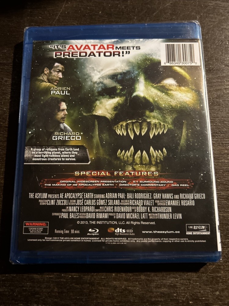 Immerse yourself in the world of Ae: Apocalypse Earth, a thrilling sci-fi and fantasy movie on Blu-ray disc. Starring Richard Grieco, Adrian Paul, Gray Hawks, and Bali Rodriguez, this action-packed film follows the story of a group of people who must band together to survive the end of the world. Directed by Thunder Levin, this movie is sure to keep you on the edge of your seat. Released in 2013, this Blu-ray version of Ae: Apocalypse Earth is a must-have for any fan of the genre. With a not-rated rating, this movie is suitable for a wide audience. Get ready to experience the ultimate apocalypse tale with this exciting film.