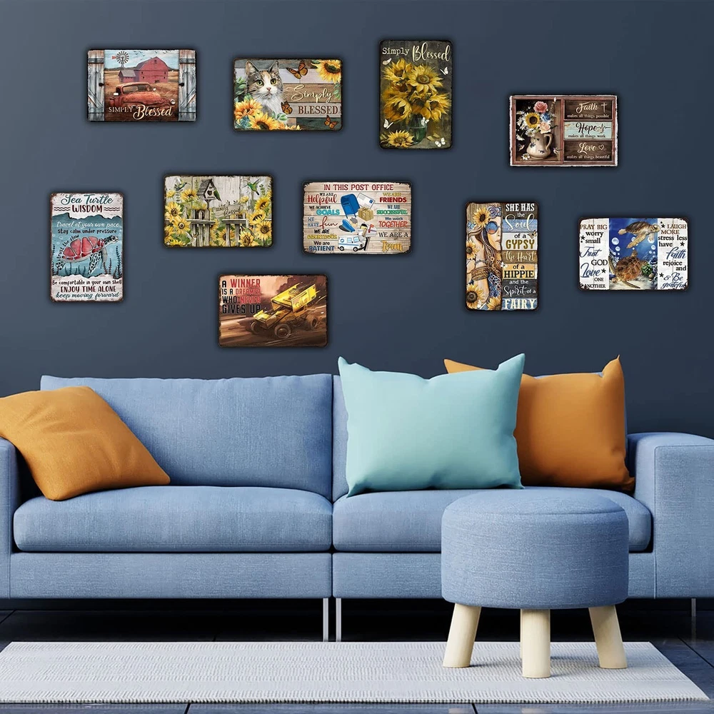 Aenaon Farmhouse Metal Tin Sign Vintage Home Kitchen Garage Bar Cave Wall Nostalgic Decor Rustic Truck Windmill and Sunflower Tin Sign 8x12 Inches Product Details Color: As the Picture Shows3 Brand: Aenaon Material: Metal Theme: Vintage Recommended Uses For Product: Property Mounting Type: Wall Mount Product Dimensions: 12"L x 8"W Shape: Rectangular Style: Classic,Vintage Pre-printed: Aenaon Truck Windmill and Sunflower Global Trade Identification Number: 41 Item Weight: 5 ounces Manufacturer: Aenaon shop Item model number: SY-SY1018-07-S-3 Batteries required: No Decorative Sign Dimensions - 8" x 12" (20X30cm) Each vintage metal tin sign has a small hole in the corner so it can be hung on the wall or you can glue the item to the wall. Metal tin sign with classic retro decoration, special "vintage" marks: worn and rusted, but the surface of the product is smooth. Fun Vintage Metal Signs - Suitable for bar, cafe, restaurant, billiard room, hotel, club wall decoration and many other places to create a stylish atmosphere. The perfect sign to add more fun to life - place it anywhere in the room, use it as a decoration, or give it to a friend as a gift. Our tin sign is available in a wide variety of styles.Waterproof, Non-glare, Clean simple and Colorfast.- Creative, contracted, fashionable design.Our Vintage retro poster metal sign suitable for many places, such as home,bar,coffee,garage,bathroom,farmhouse,dining room,billiard house, hotel, club retro wall decorations, creating stylish atmosphere. The Tin Sign would be a very meaningful Gift for your friend,family.