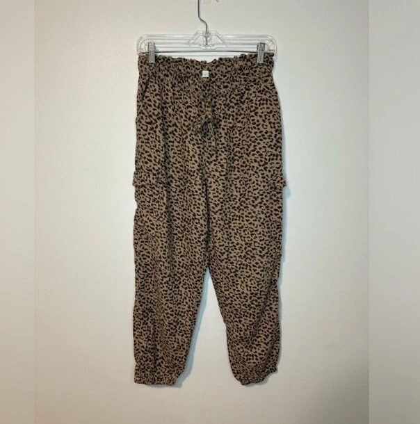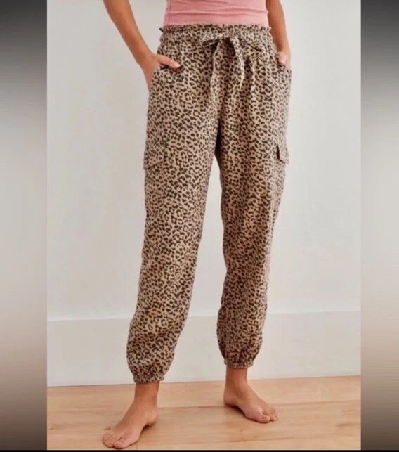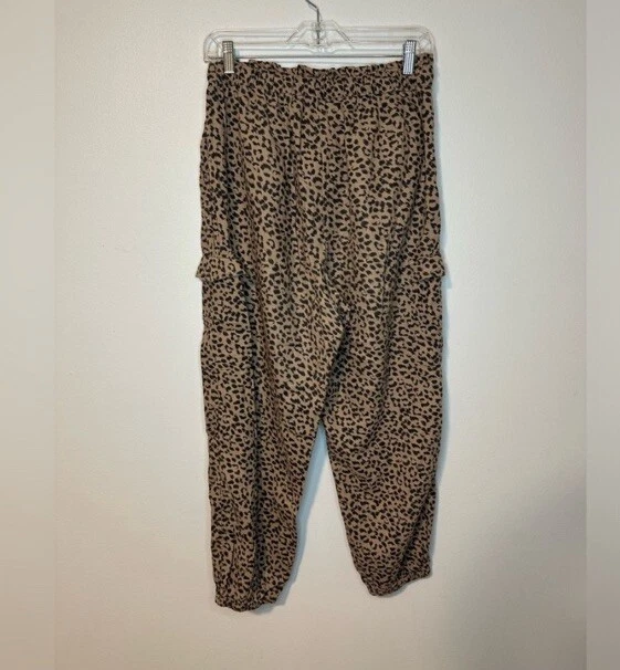 Aerie Animal Print Linen Blend Jogger Pants M Pull On Cargo Pockets Boho Trendy