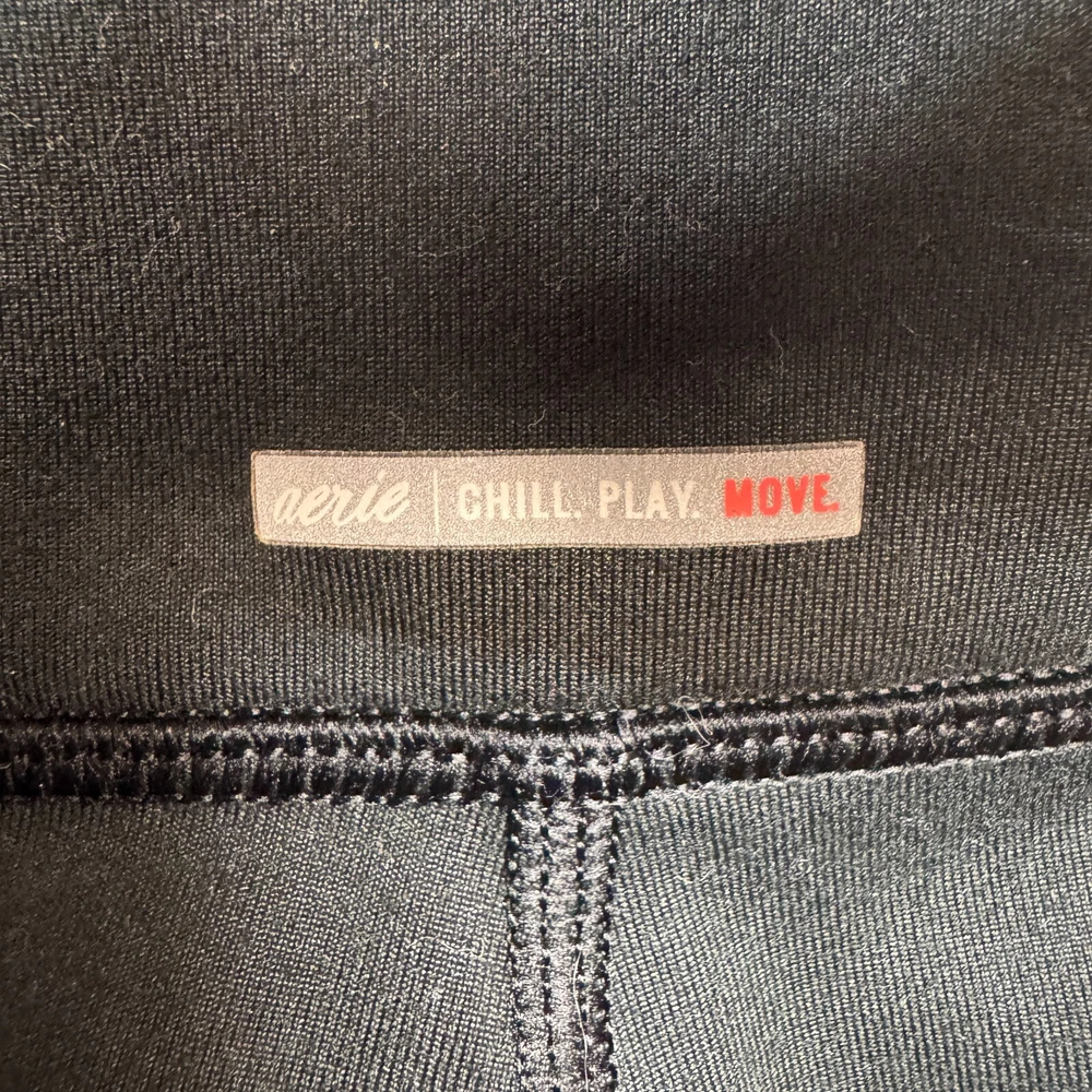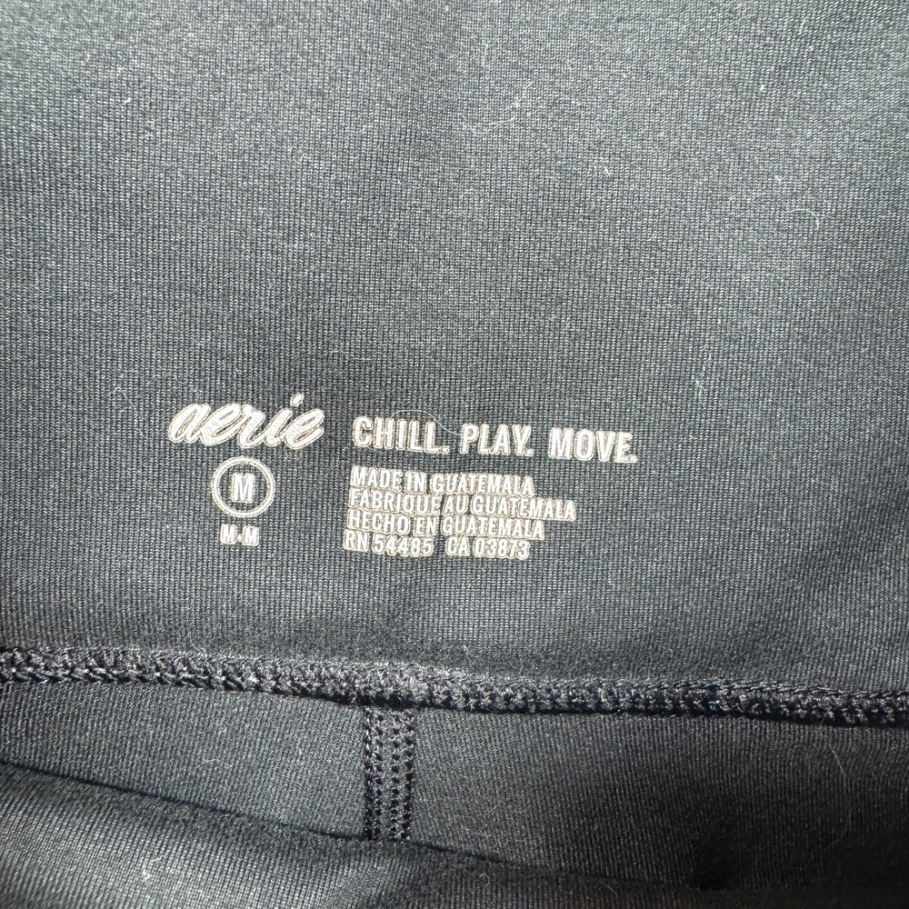 Experience the perfect blend of comfort and style with Aerie's Chill.Play.Move. leggings, designed for the modern yogi. These size medium black leggings boast an ankle style that's versatile for both your yoga sessions and casual outings. The strategic mesh detail adds a touch of edgy flair while ensuring breathability during your workouts. Crafted with high-quality fabric that withstands medium washes, these leggings are a staple for any woman's activewear collection. The regular size type ensures a snug yet comfortable fit, allowing you to move freely through your practice or day. Make these Aerie leggings a go-to for both functionality and fashion.
