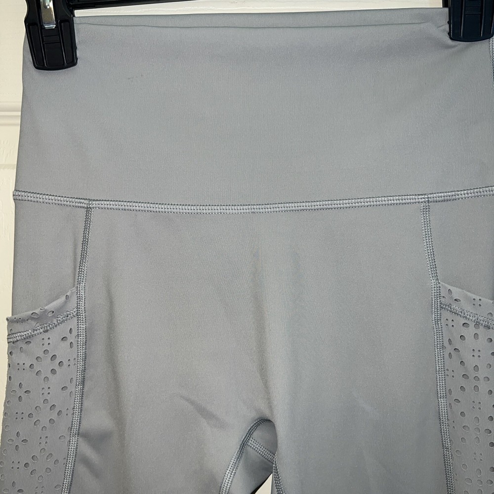 Size: M Type: Leggings Inseam: 26 in Style: Ankle Features: Comfort, Elastic Waist, Stretch Fabric Wash: Medium Rise: High (Greater than 10.5 in) Color: Gray Department: Women Pattern: Solid Waist Size: 24 in Brand: Aerie Size Type: Regular