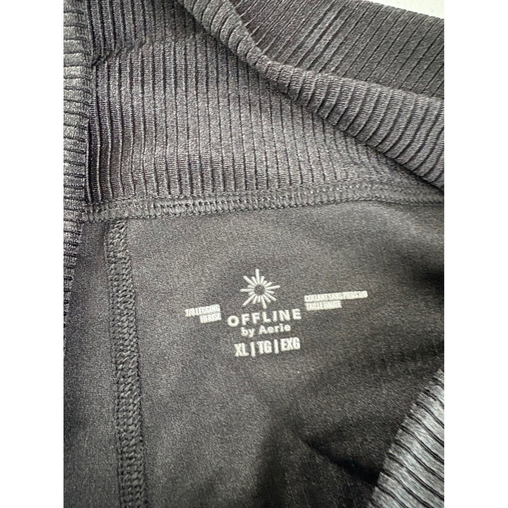 Stylish and comfortable ribbed leggings, perfect for workouts or casual wear. These leggings feature a flattering high-waisted design and a unique ribbed texture that adds a touch of sophistication. The versatile design makes them suitable for various activities, from yoga sessions to running errands. These leggings are a great choice for creating a stylish and comfortable athleisure look, ideal for pairing with a sports bra for a workout or dressing up with a tunic for a casual outing. Color: Black Department: Women Style: Ankle Type: Leggings Material: Spandex, Polyester Blend, Polyamide Blend Features: High Waist, Ribbed, Comfort, Stretch, Athleisure Rise: High (Greater than 10.5 in) Pattern: Solid Character: Comfort, Style Keywords: Aerie, OFFLINE, Leggings, Ribbed, High Waisted, Athleisure, Workout, Yoga, Comfortable, Black Leggings, XL Leggings, Activewear, Casual Wear, Womens Leggings