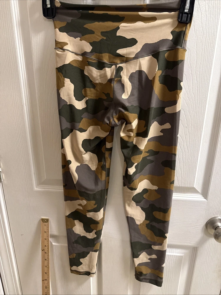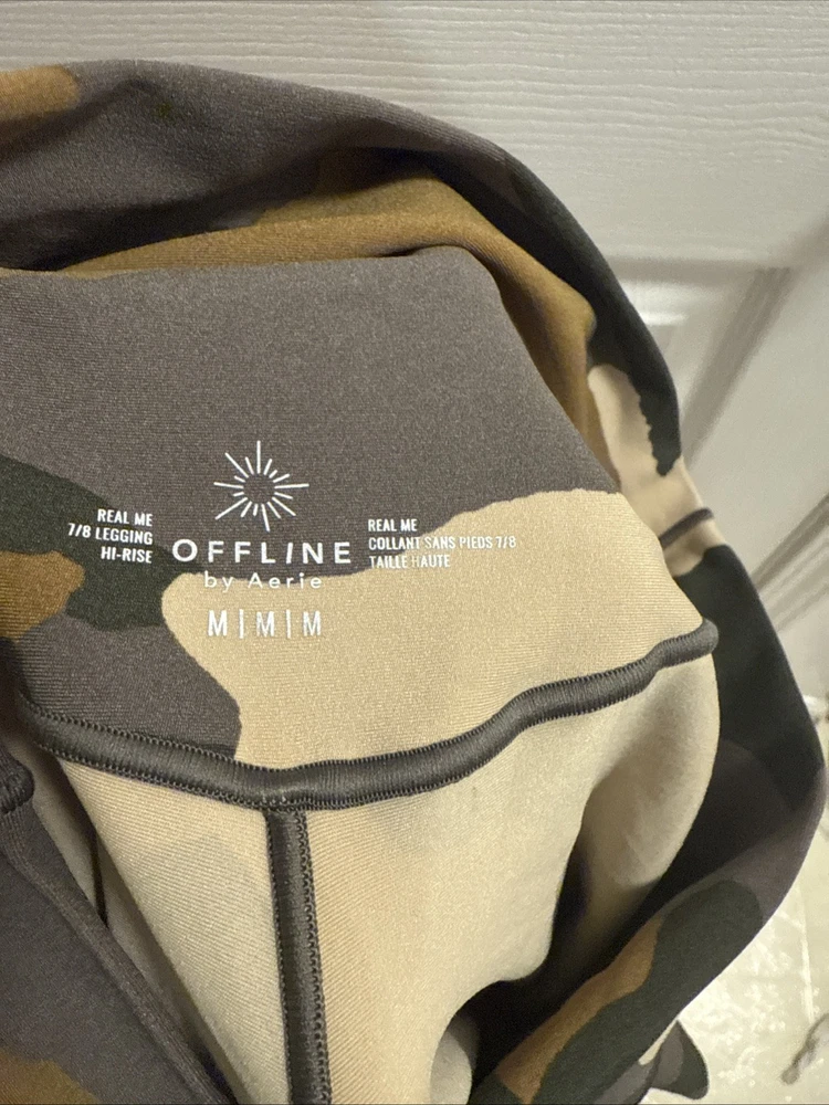 The product is a pair of Aerie leggings in a colorful camo print, perfect for adding a fun and stylish touch to any outfit. These leggings are designed for women in a regular size Medium, with a lined interior for added comfort. The ankle length and medium fabric wash make them versatile for both casual wear and workouts, while the multicolor design adds a vibrant and colorful element to your wardrobe. Perfect for those looking to make a statement with their clothing choices.