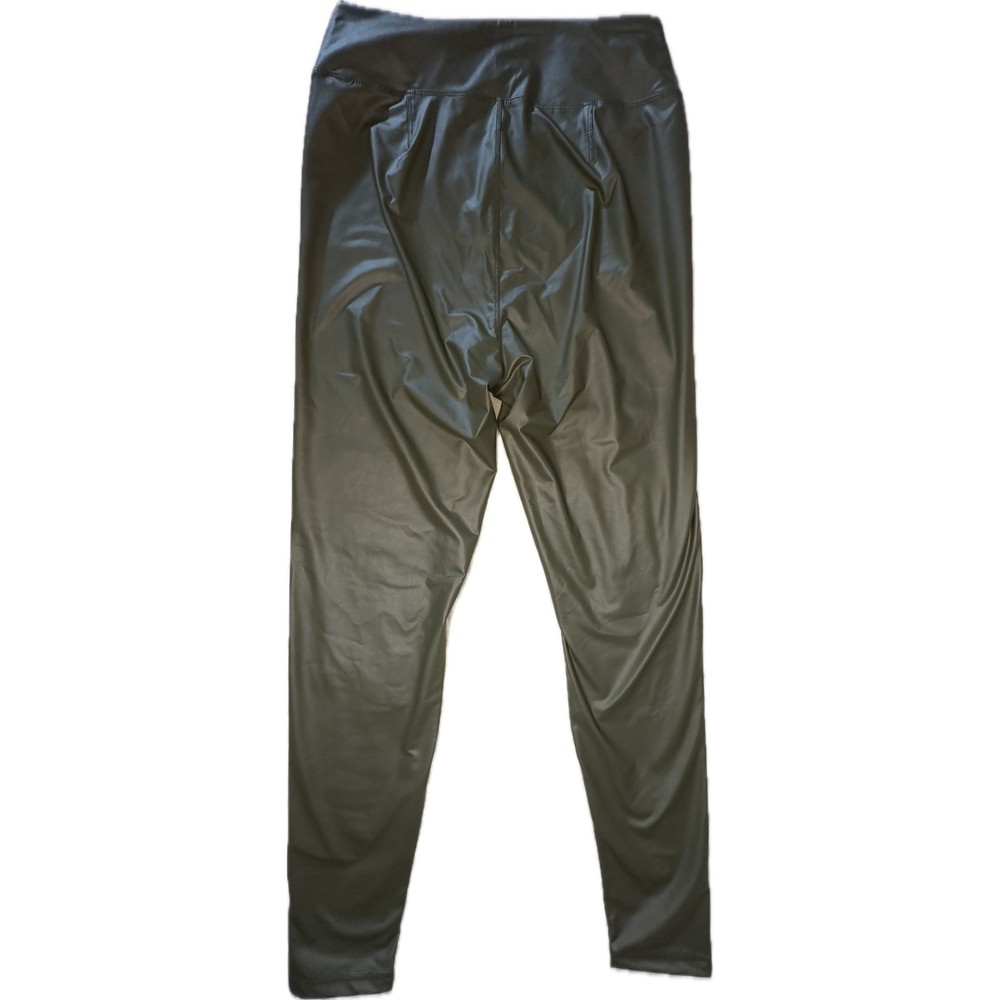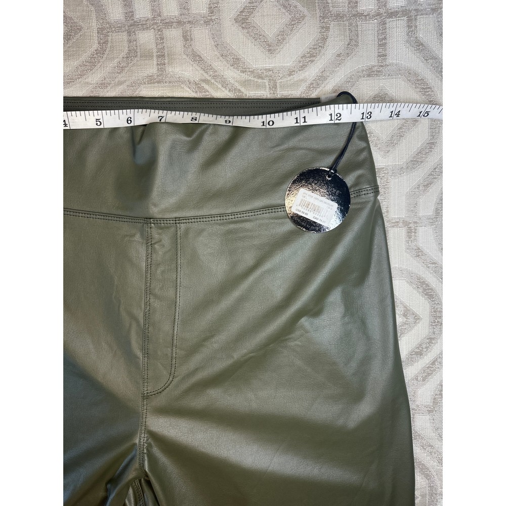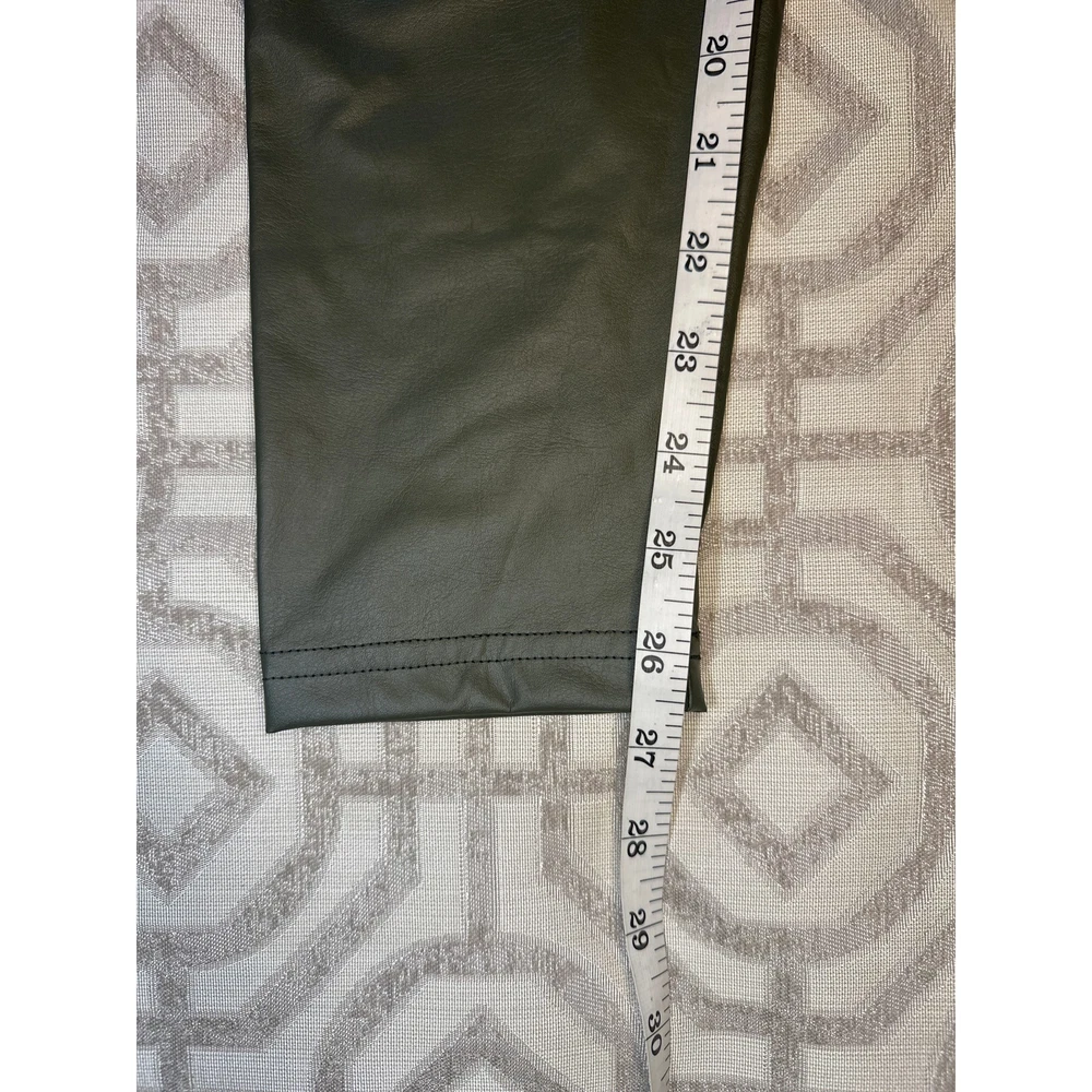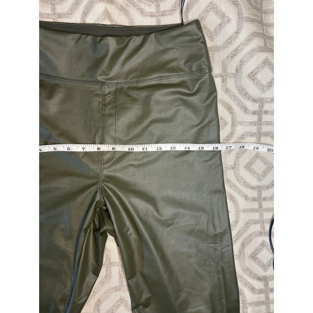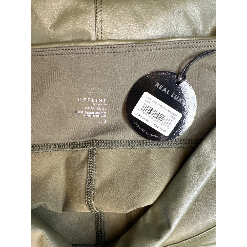 Offline by Aerie Faux Leather Leggings Soft Stretch Green Sz large The Details THE FABRIC: NEW! Real Our Luxe faux leather is soft as ever, comfy as always, and built for strutting it out. THE DEETS: Faux fly deets to elevate any outfit. Materials & Care 95% Recycled Polyester, 5% Elastane Machine wash Size & Fit THE FIT: High waisted. Full Length.