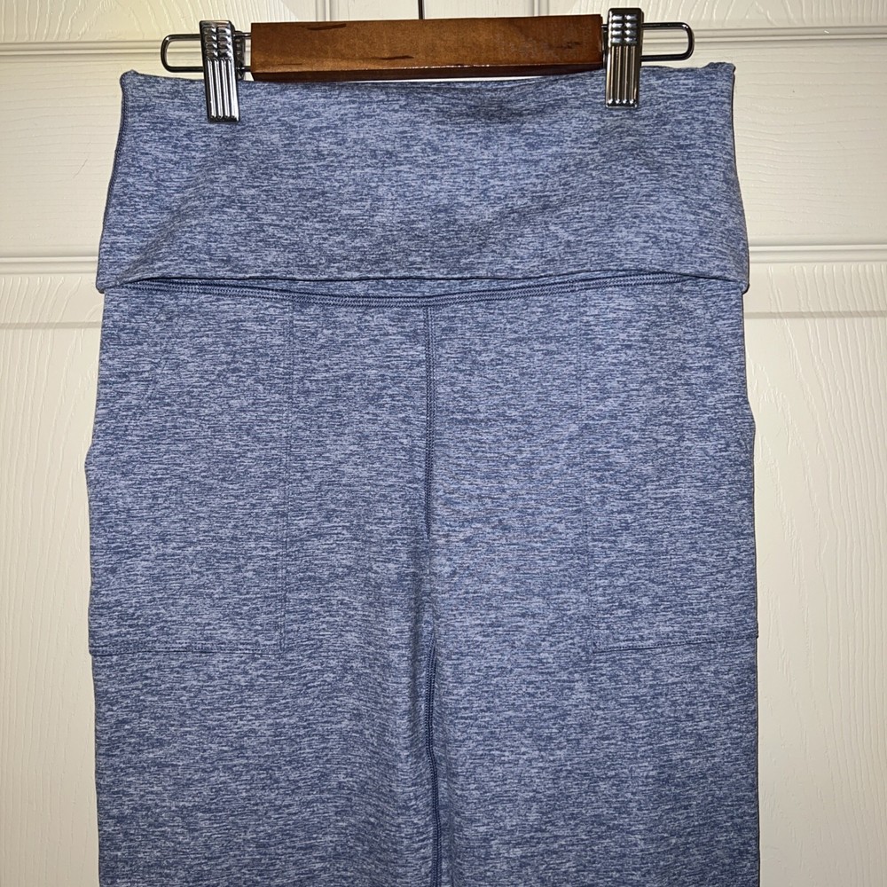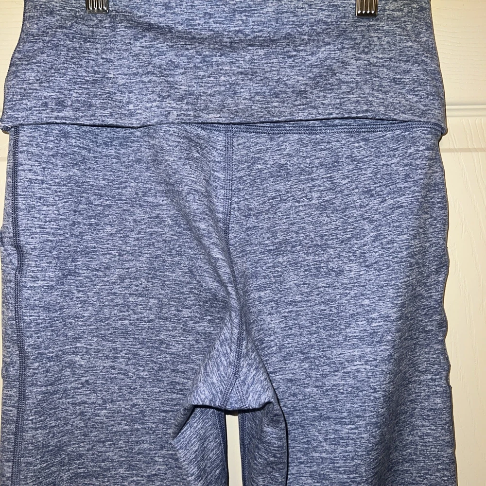 Inseam:31 inBrand:AerieRise:High (Greater than 10.5 in)Type:LeggingsFeatures:PocketsDepartment:WomenMaterial:Polyester, ElastineStyle:AnklePattern:HeatheredSize Type:RegularColor:BlueSize:Medium Long