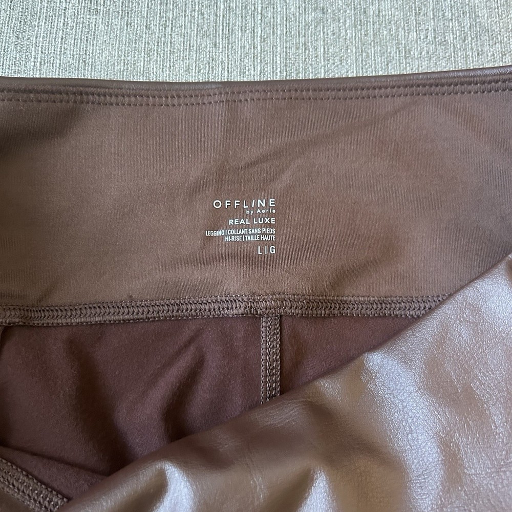 Color: Brown Size Type: Regular Performance/Activity: Yoga Personalize: No Theme: Bohemian, Classic, Modern Country/Region of Manufacture: Vietnam Inseam: 27.5 in Fabric Type: Blended Fabric Occasion: Casual Pattern: Solid Material: Faux Leather Season: Fall, Spring, Summer, Winter Style: Legging Type: Leggings Brand: Aerie Accents: Logo Department: Women Size: L Garment Care: Machine Washable Vintage: No Features: Comfort, Stretch Handmade: No Rise: High (Greater than 10.5 in)
