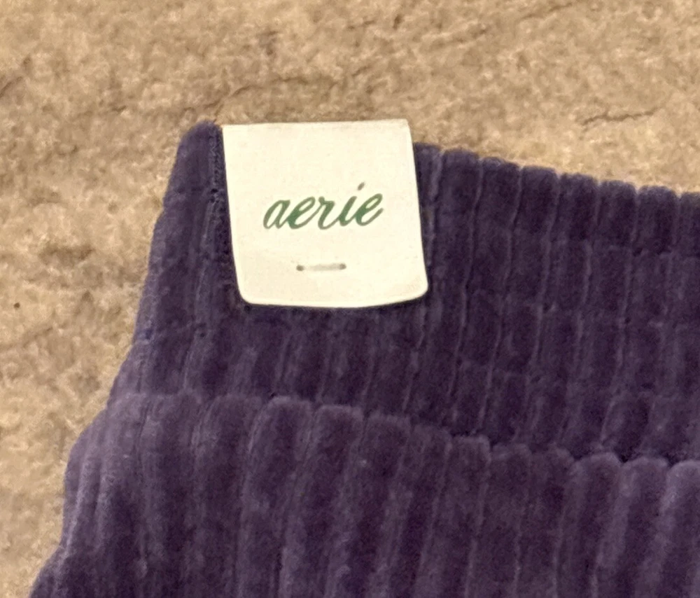 Aerie Pull On Pants Women's Small Purple Corduroy Flared Leg Stretch High Rise Elevate your casual wardrobe with these Aerie pull-on pants in a stylish green corduroy fabric. These pants feature a high-rise waist and flared legs for a comfortable and flattering fit. The pants are made of a blend of polyester, spandex, and cotton, which makes them stretchy and easy to care for. The chino style pants have a solid pattern and a flat front and easy-to-use pull-on closure. The pants are perfect for any casual occasion and can be worn in any season. Add a touch of bohemian and retro vibe to your wardrobe with these comfortable and stylish pants. To upcycle, I reuse shipping material as often as possible. Buy more from my store and save on shipping.