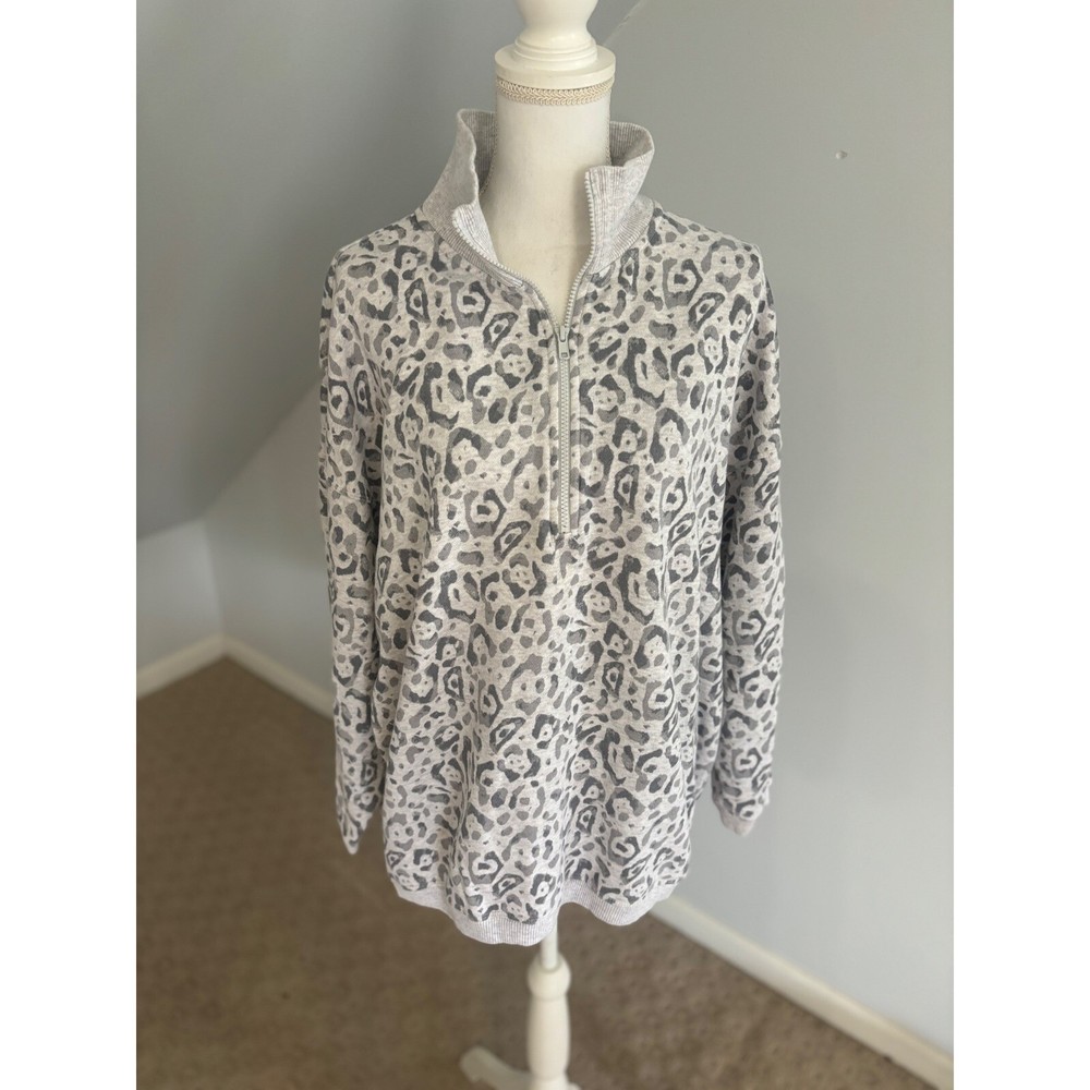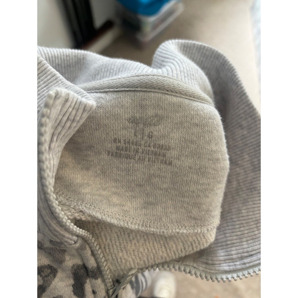 Cozy comfort meets chic style in this Aerie pullover sweatshirt. A striking leopard print in shades of gray adds a touch of wild sophistication to your casual wardrobe. The quarter-zip design allows for adjustable warmth and effortless layering, while the relaxed fit ensures all-day comfort. The high collar provides extra warmth and style. Perfect for running errands, lounging at home, or meeting friends for a casual brunch. Style: Pullover Color: Gray Department: Women Type: Sweatshirt Closure: Zip Features: Quarter Zip, Relaxed Fit, High Collar, Comfort Fit, Long Sleeve Fabric Type: Knit Material: Cotton Blend Character Family: None Pattern: Animal Print Accents: Zipper Sleeve Length: Long Sleeve Keywords: Aerie, pullover, sweatshirt, leopard print, quarter zip, gray, long sleeve, casual, comfortable, athleisure, loungewear, relaxed fit, high collar