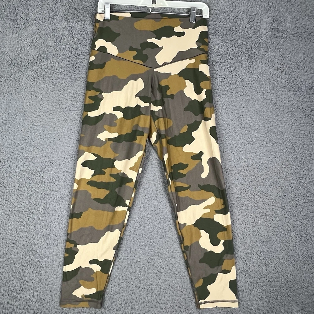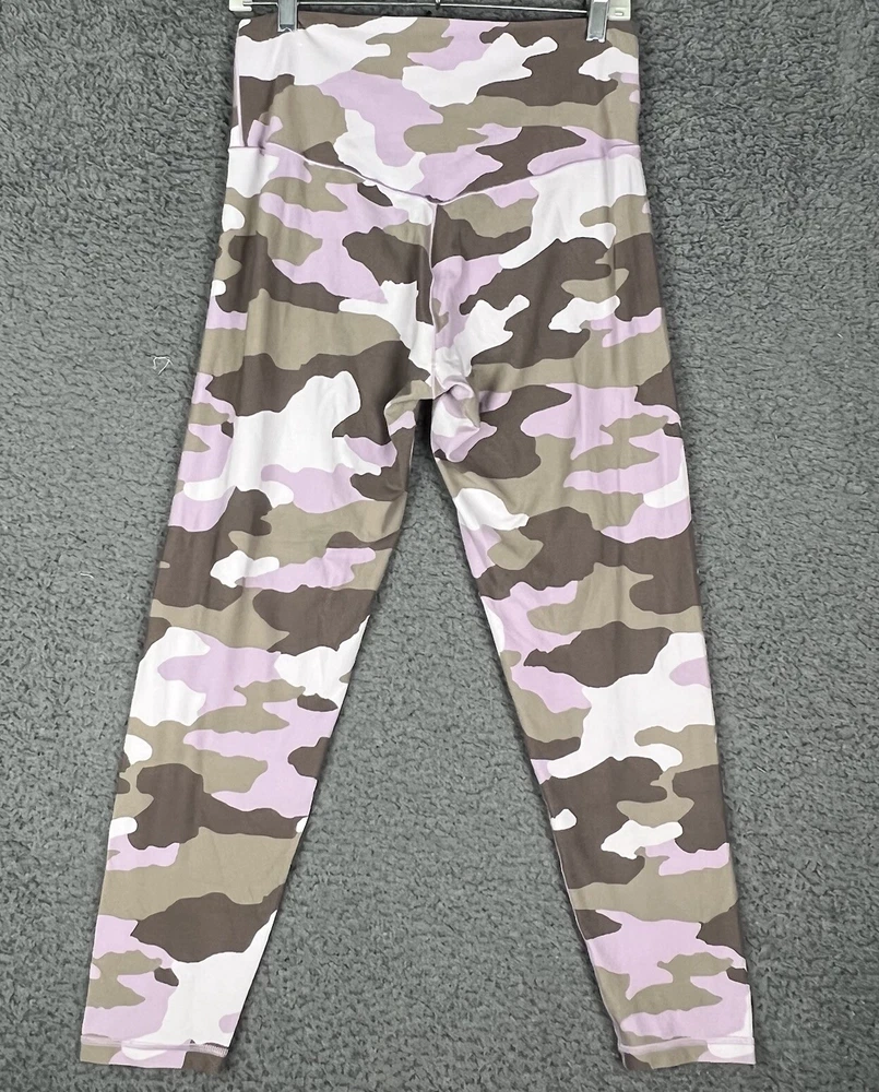 NOTE: there is some pilling, but still in excellent condition. Elevate your workout wardrobe with these Offline by Aerie Real Me 7/8 Leggings in high-rise purple camo and green camo. Designed for women who love a blend of style and comfort, these leggings come in size XL and are perfect for gym & training, yoga, cycling, or CrossFit. The blended fabric of polyester, spandex, and nylon makes them lightweight, stretchy, and comfortable, while the hi-rise waistband provides a snug fit that flattens the stomach. The leggings feature a colorful and bold camouflage pattern that adds a touch of fun to your activewear collection. They are machine washable and easy to care for. With the right amount of stretch and comfort, these leggings are perfect for all seasons, whether it's winter, summer, fall, or spring. Add these leggings to your collection and get ready to hit the gym in style!