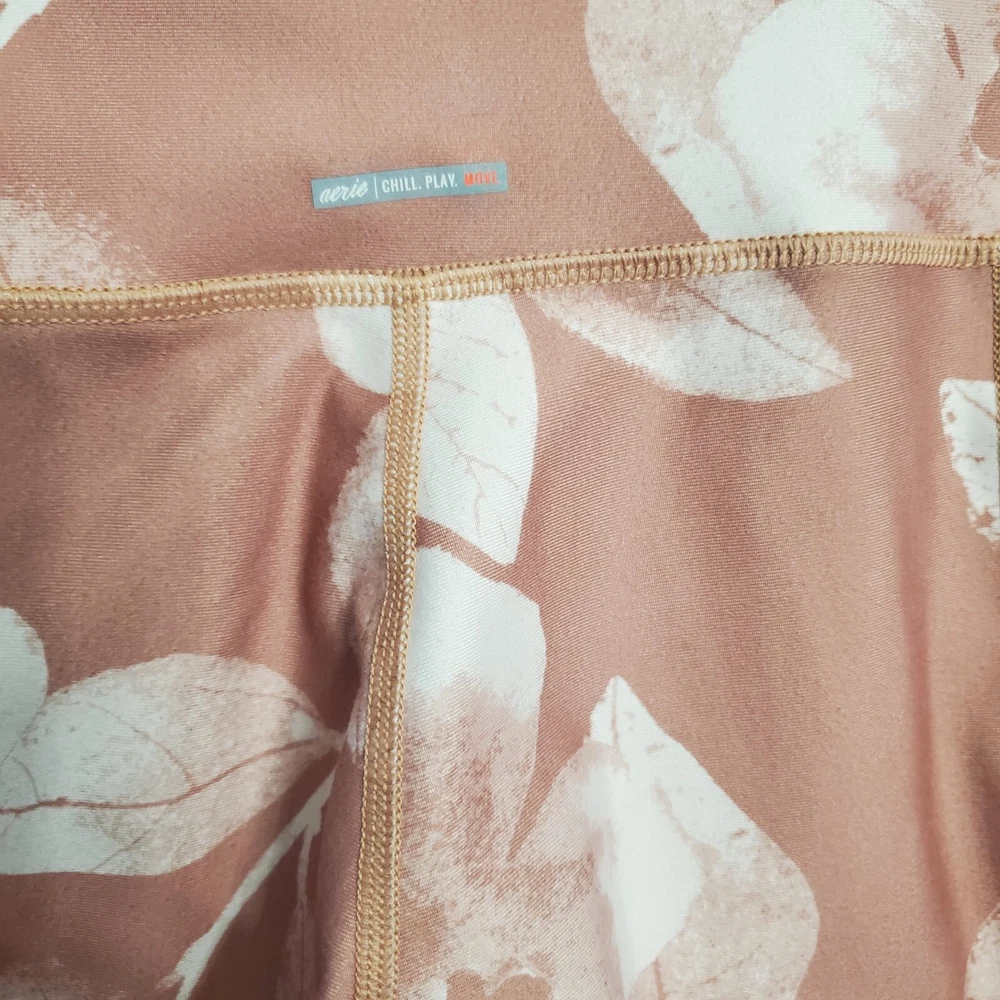 Aerie Woman's Floral Peach/Pink Athletic Leggings Size Medium These stylish floral peachy pink leggings are perfect for your daily walk or workout Comfortable and trendy, they are ideal for everyday wear. Woman's size Medium Very good Pre-owned condition I except any reasonable offers and will ship same or next day