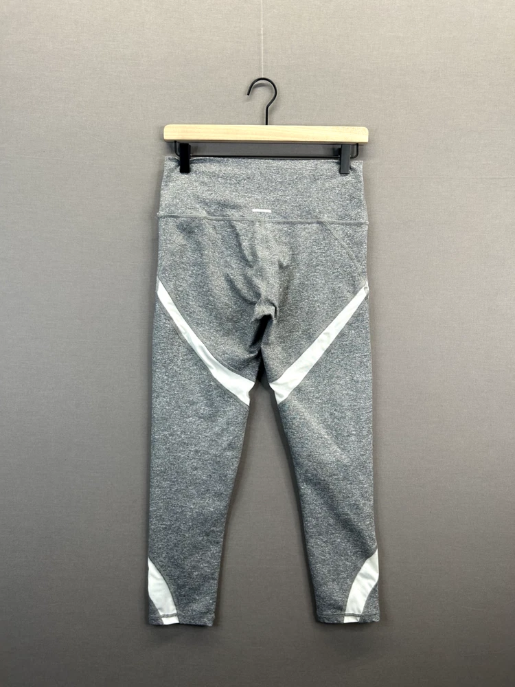 Aerie Womens Gray Capri Leggings with White Stripes Elastic Waist Medium