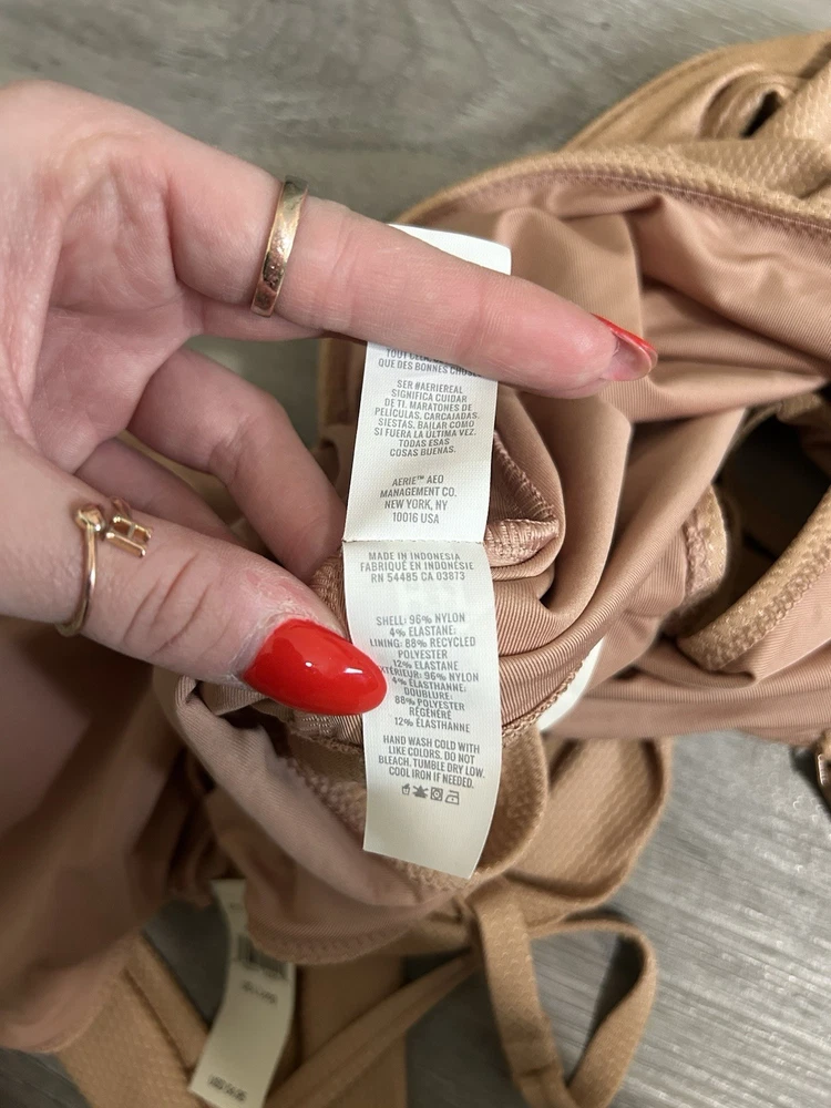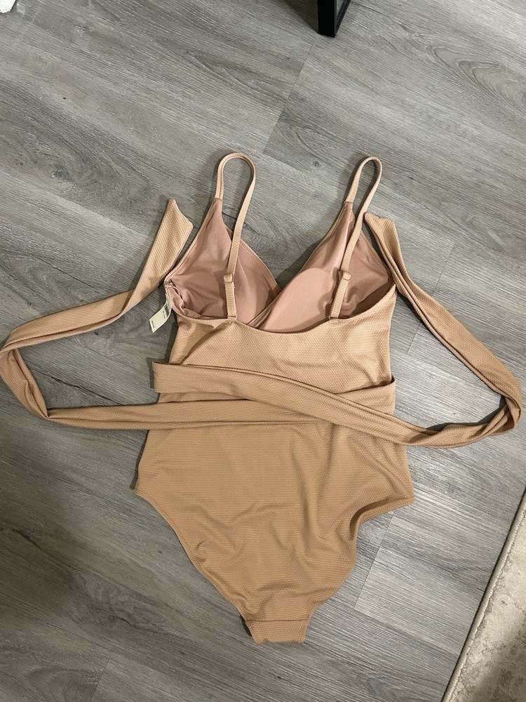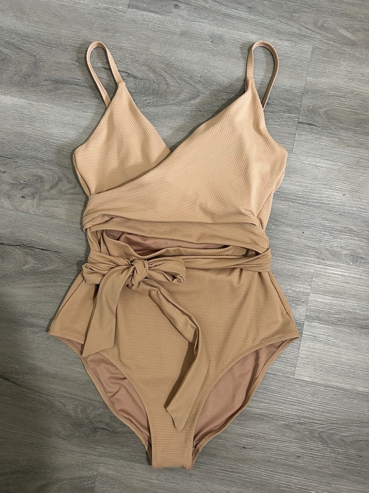 The Aerie Women's Pique Wrap One-Piece Full Coverage Swimsuit in size Large Tall is a stylish and comfortable swimwear option for women looking for a beach theme. This beige swimsuit features a wrap top style with stretch accents, a full coverage bottom, and is made of nylon material. With hand wash only care, this one-piece suit is perfect for a day of lounging by the pool or enjoying a relaxing swim. The Aerie brand is known for its quality and stylish designs, making this swimsuit a great choice for any beach or poolside outfit.