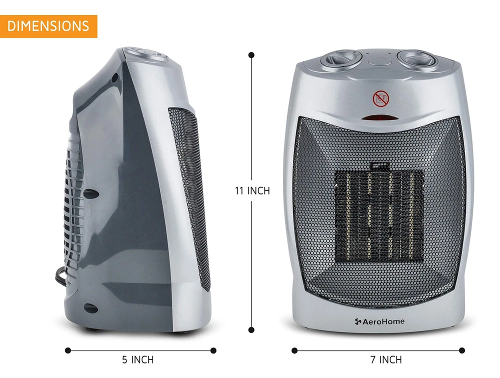 The perfect ceramic space heater for the home or office ✔ COMPACT: ( 11" tall x 7" wide x 5" deep) ✔ Lightweight 3.5 Lb – Portable and Easy to Move From Room to Room ✔ Easy to Operate: 3-Function Dial (1500W, 750W or Fan) ✔ Adjustable Thermostat Adjustable Thermostat, Quiet Fan Motor. ✔ SAFE: ETL Certified for Indoor Use with overheat tip-over protection ✔ EASY TO POSITION: a convenient carry handle and6-foot Long Electric Cord ✔ GUARANTEED – Purchase With Confidence: The AeroHome Ceramic Space Heater is backed by our Money Back Guarantee