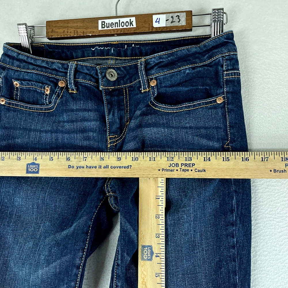 Aeropostale Bayla Womens Jeans Blue Tag Size 6 (28x26.5) Low Rise Skinny Stretch -------> PLEASE NOTE: TAKE A SPECIAL LOOK AT THE WHITE ARROWS or a wooden Stick ON THE PHOTO SECTION SHOWING THE FLAWS<------- -------> PLEASE NOTE: SLIGHTLY STAINED <------- Made in: China TRUE SIZE * The measurements we made with a ruler of THE ACTUAL SIZE OF THE PANTS are on photos.* * The hanger is not included * Genre: Female Condition: Pre-Owned This pair of jeans are in good condition, they don't look like brand new, are PRE-OWNED (USED) they has been used or worn previously, so might have some signs of wear, They look like as described on photos, If there any or many blatant flaws on the item it would be pointed out with a pointing white arrow or a wooden Stick. Please Note that TRUE SIZE measurements are showing on photos with a ruler. Some things to consider: * All our items are inspected several times before we ship to you. If there is an issue, you will find it photographed and described in the condition overview . Please review this very closely to ensure that this item is exactly what you are looking for. * All items are cleaned and stored in a pet-free / smoke-free environment. * Please take a special look to all the measurements we took using a ruler and also the measurements that comes in the item tag for an accurate fit. This saves you the headache of returning an Item that does not fit. we offer 30 day free returns on unused/unworn items. Please compare our measurement photos to your favorite garments to ensure fit. Note, item measurements are approximate and in the photos. Feel free to ask any question about this item. "We ship as soon as possible after the payment has been made"