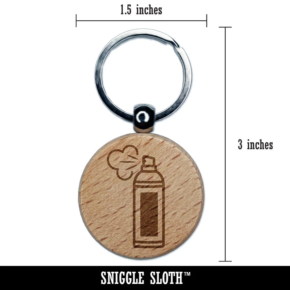 Aerosol Can Spray Paint Hair Spray Engraved Wood Round Keychain Tag Charm