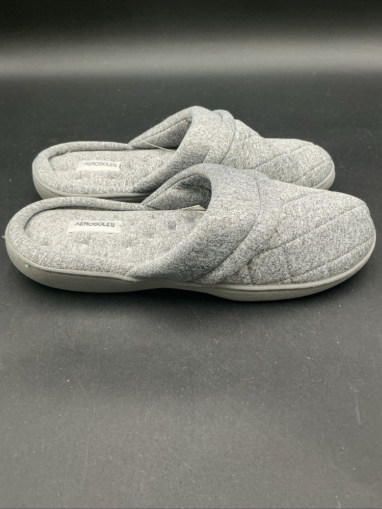 The Aerosoles Gray Quilted Slip-On Slippers in size XL (9.5-10.5) are a comfortable and stylish option for women looking for a slipper to relax in. The slip-on style and quilted accents add a touch of elegance, while the fabric upper material ensures softness and durability. Made in China by the brand Aerosoles, these slippers are designed for both comfort and style, perfect for lounging around the house or running quick errands. Size xl