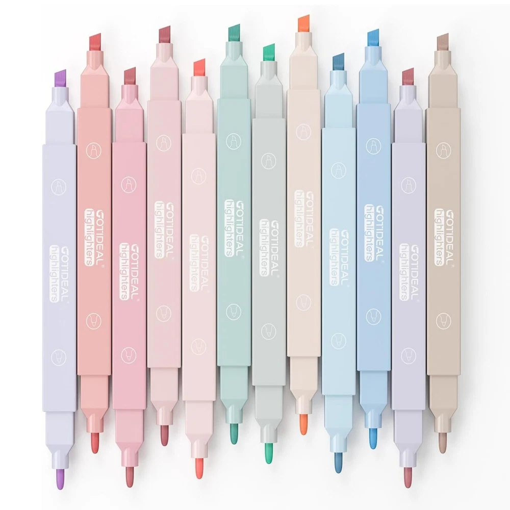 Aesthetic Cute Pastel Highlighters set, Dual tip 12 Pack No Bleed Bible Highligh ID No: S197 Soft and Gentle Pastel Shades: This 12-piece highlighter set features soft pastel colors that add a delicate touch to your notes, making them ideal for studying and work. Quick-Drying, No-Bleed Ink: Made with water-based ink that dries swiftly and prevents bleed-through, these highlighters offer a seamless writing experience for your documents, favorite book passages, Bible verses, or notes. Ergonomic and Portable Design: With a flat shape, these highlighters are easy to grip without causing hand fatigue. Their lightweight, compact design allows for convenient portability and use anywhere. Versatile Dual Tip: Our highlighters feature a dual tip design that produces both wide and narrow lines, making them perfect for highlighting scriptures, notes, journals, and a variety of books in bright, vibrant colors. Ideal for Everyday Use: These charming highlighters are perfect for journaling, planning, studying, note-taking, and annotating, whether at school, university, home, or in the office, and they're great for travel. They also make wonderful gifts for family and friends. More Details Ink Color: Assorted colors Quantity: One item Point Type: Fine tip Suggested Uses: Ideal for writing ⴵ Handling Time We will ship your orders within 3 business day of payment. 👤Customer Service We are here for your questions and requests. Also, if you are unsatisfied with your order please contact us and we will respond you within 24 hours.