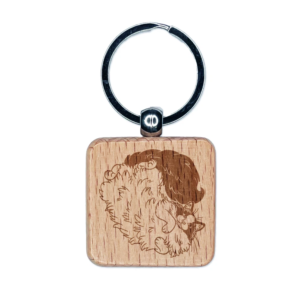 Affectionate Ragdoll Cat Engraved Wood Square Keychain Tag Charm