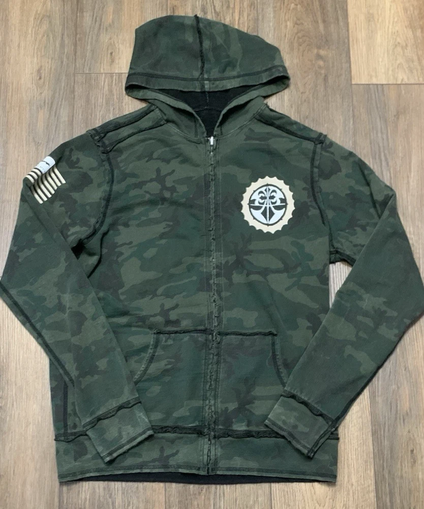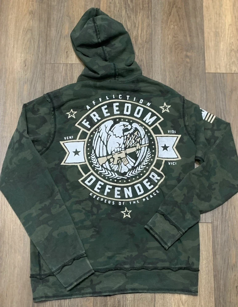 The Affliction Freedom Defender Reversible Full Zip Hoodie in Camo/Black is a versatile piece for men seeking both style and functionality in their activewear. With a reversible design, this hoodie allows for two different looks in one - perfect for those who love to switch up their style. The full zip feature and hood make it easy to layer over outfits, while the comfortable size M ensures a good fit for everyday wear. This hoodie is ideal for men who appreciate quality and unique details in their clothing choices.