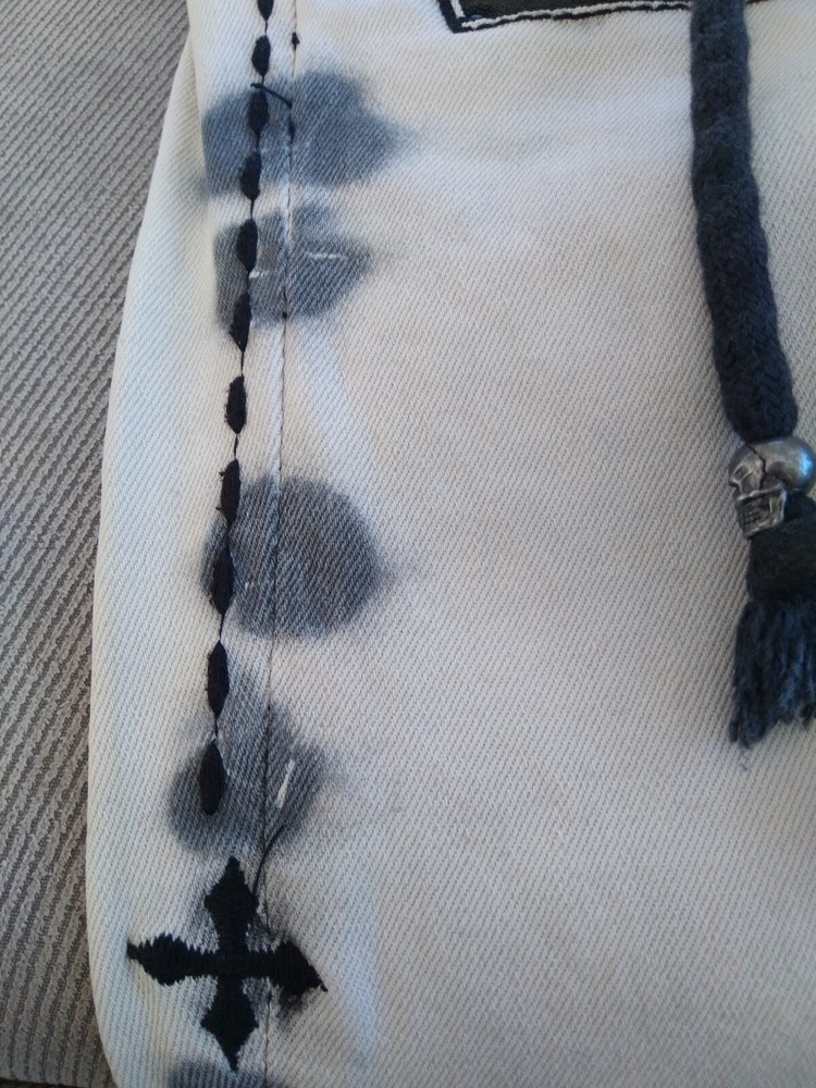 Elevate your denim collection with these stylish Affliction skinny jeans, tailored to flatter with a comfortable low-rise fit and a snug 26-inch inseam. The light fabric wash and distressed details lend a casually chic edge, perfect for pairing with your favorite tees and sneakers. With a blend of cotton and spandex, these jeans promise both comfort and durability.The jeans feature a classic gray hue, accented with an embroidered Affliction logo, stud details, and a unique zipper design that adds a touch of edgy flair to the biker-inspired theme. A secure button and zip closure ensure a perfect fit, while machine washability makes for easy care. These jeans are a versatile addition to any wardrobe, suitable for fall, spring, and summer seasons.