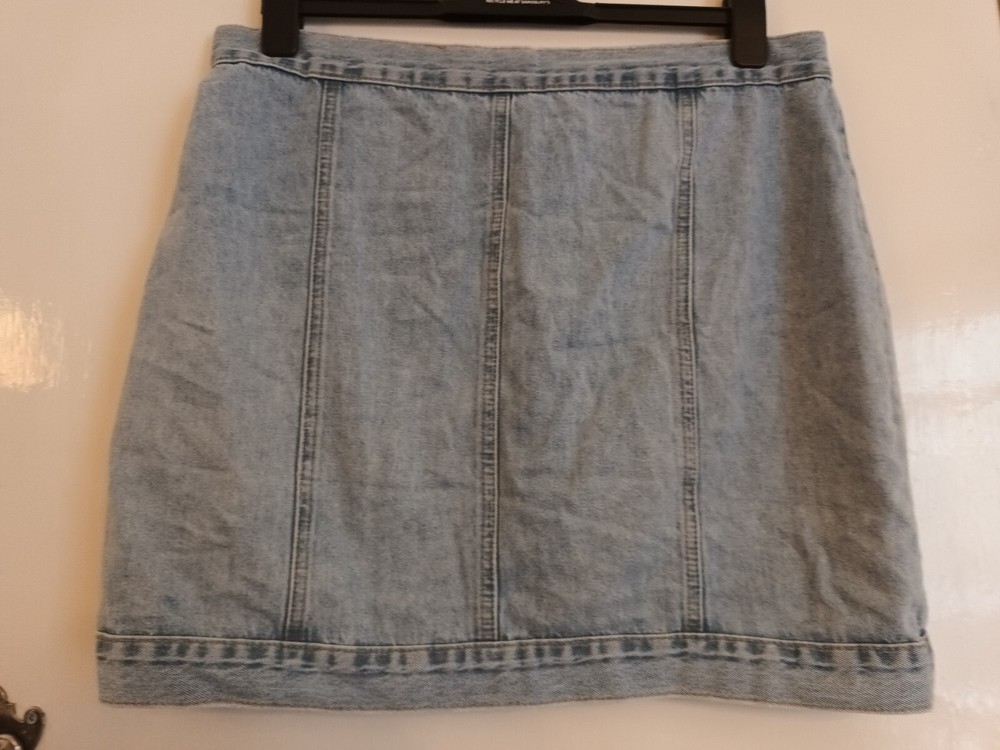 Skirt Length: Short Garment Care: Machine Washable Size: 14 Occasion: Casual Vintage: Yes Material: Cotton Blend Season: Autumn, Spring, Summer Brand: Cheap Monday Colour: Blue Style: Mini Department: Women Closure: Button Size Type: Regular Fabric Type: Denim Rise: Mid Type: Skirt Features: Pockets